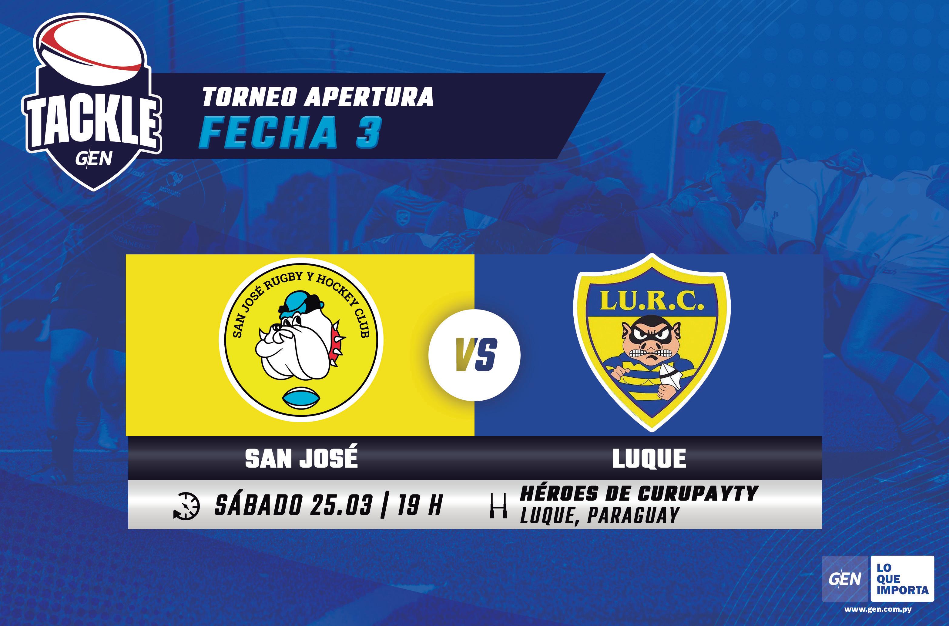tura del rugby de primera animan hoy San José y Luque en el estadio Héroes de Curupayty del Parque Olímpico de Luque, a partir de las 19, con la transmisión del canal GEN. Ambos rivales llegan motivados por sus respectivas victorias en la fecha precedente.