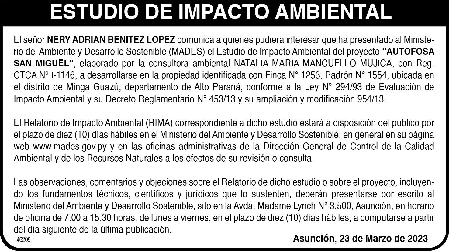 HUGO BENÍTEZ FREDDERIK ALFONSO ELÍAS SARQUIS
