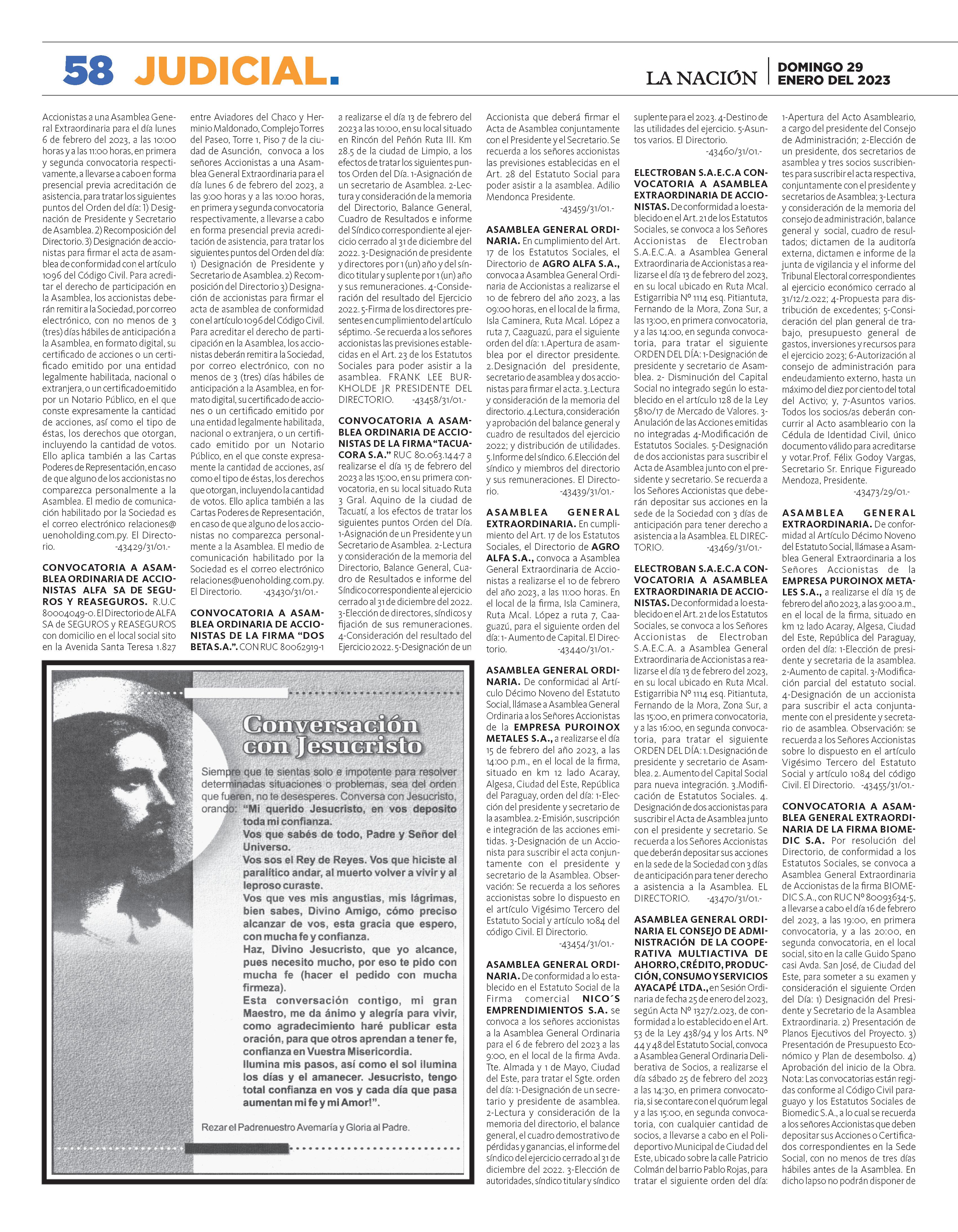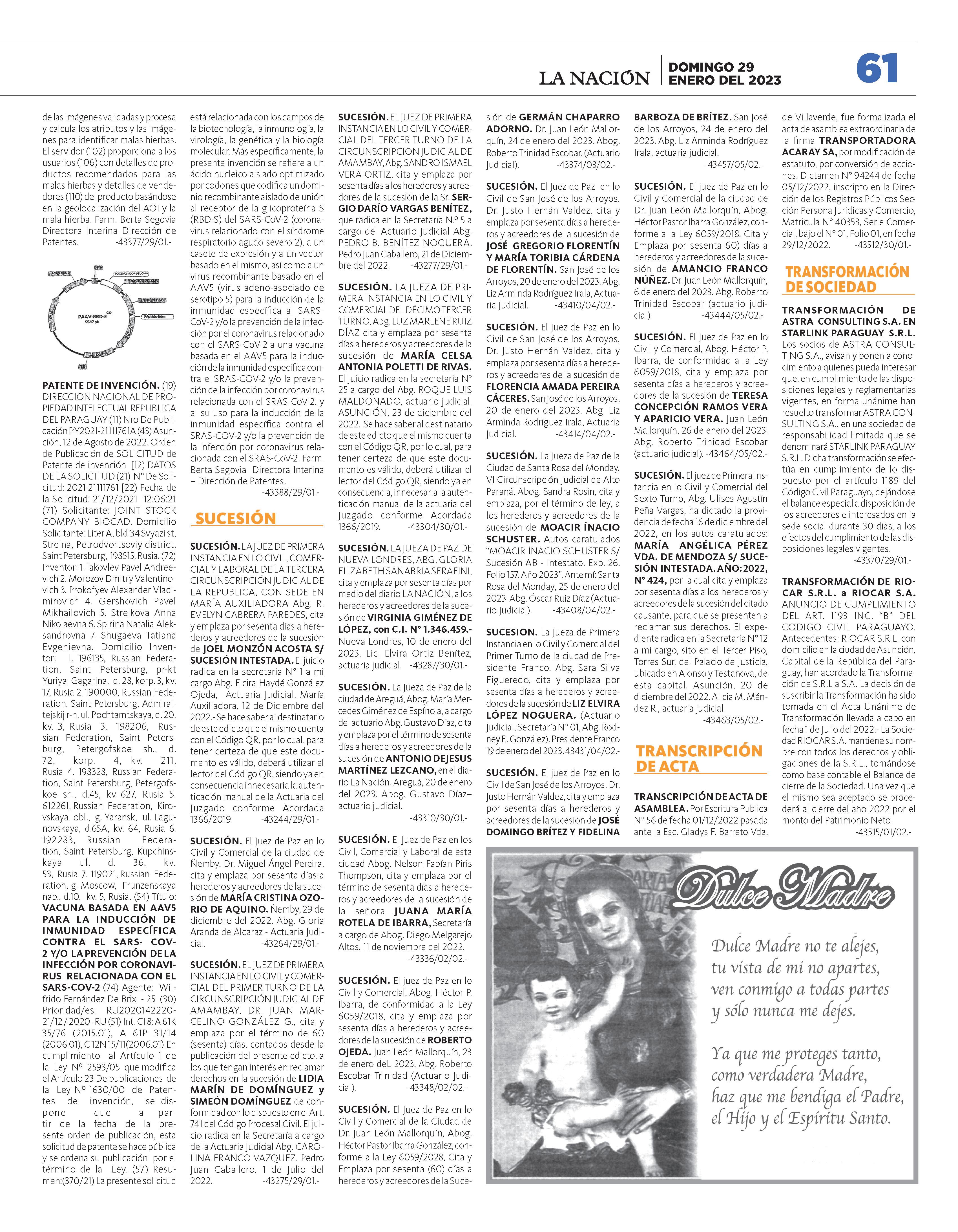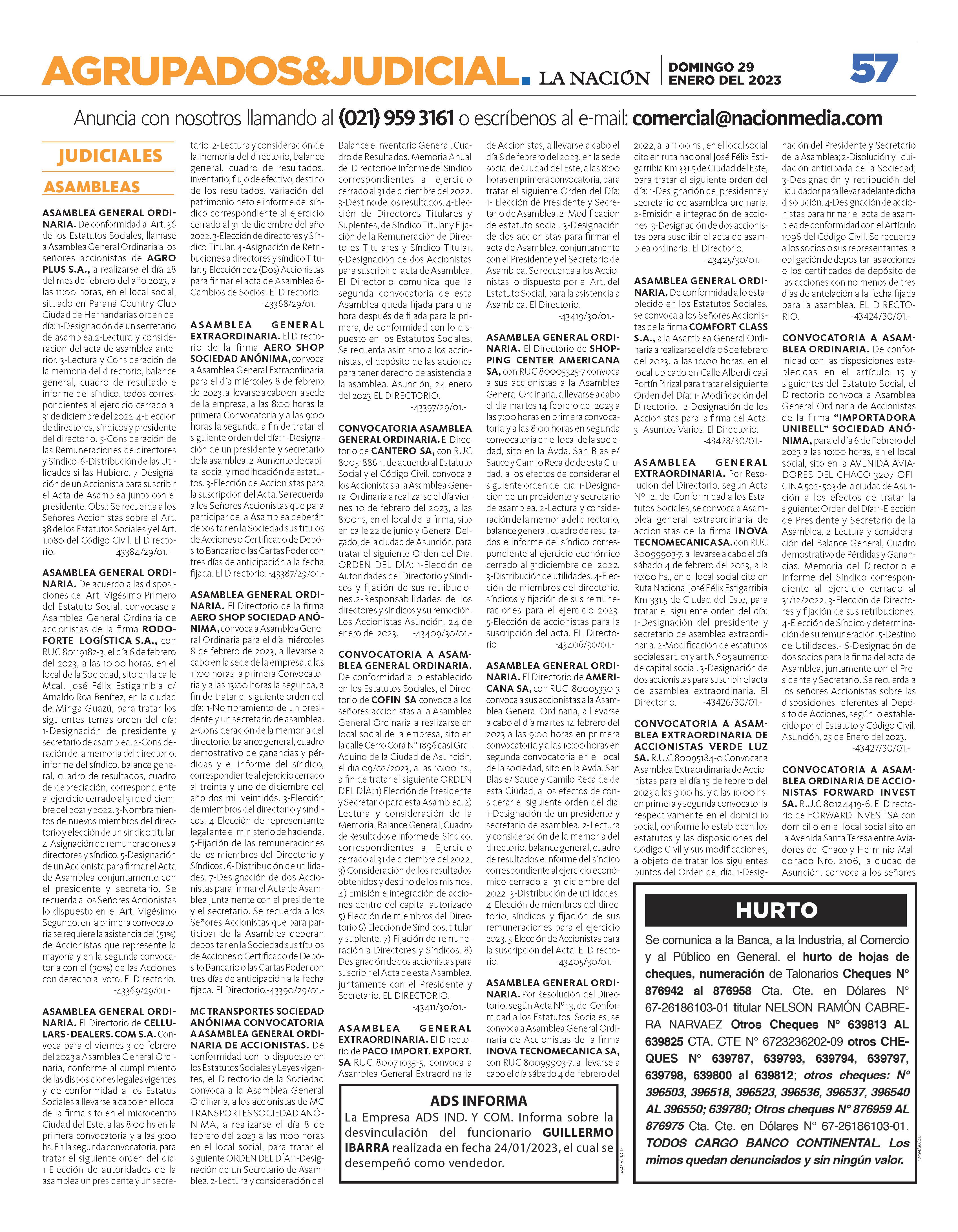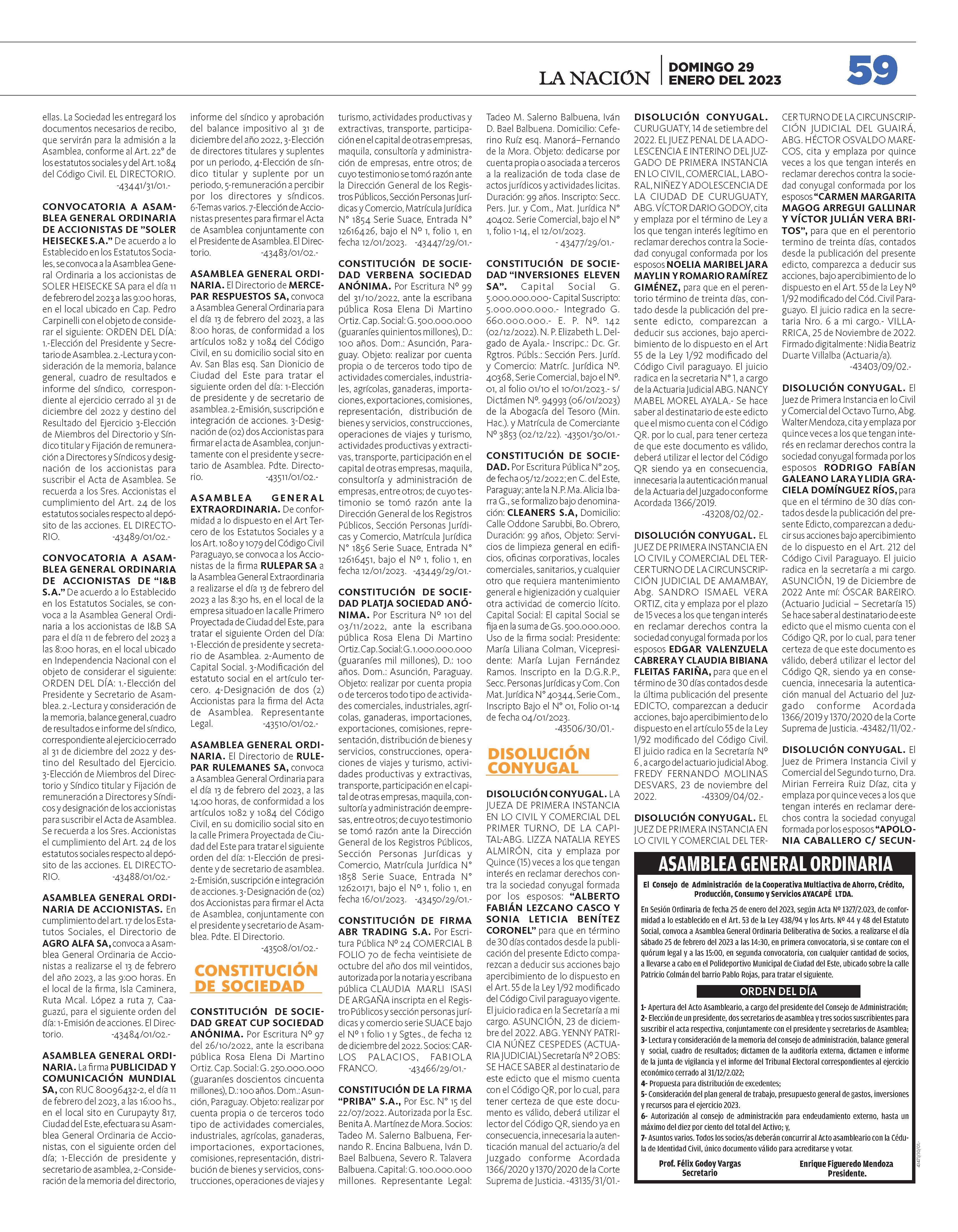 DOMINGO 29 DE ENERO DEL 2023 PARAGUAY AÑO 28 Nº 10.058 G. 10.000
