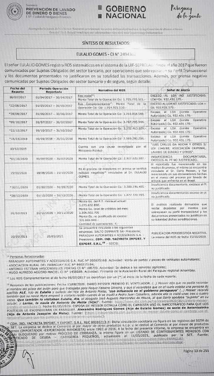 Lalo poseía vínculos con Luis Carlos da Rocha, alias Cabeza Branca, capo narco. Hubo 13 registros de operaciones sospechosas pero el gobierno Abdo