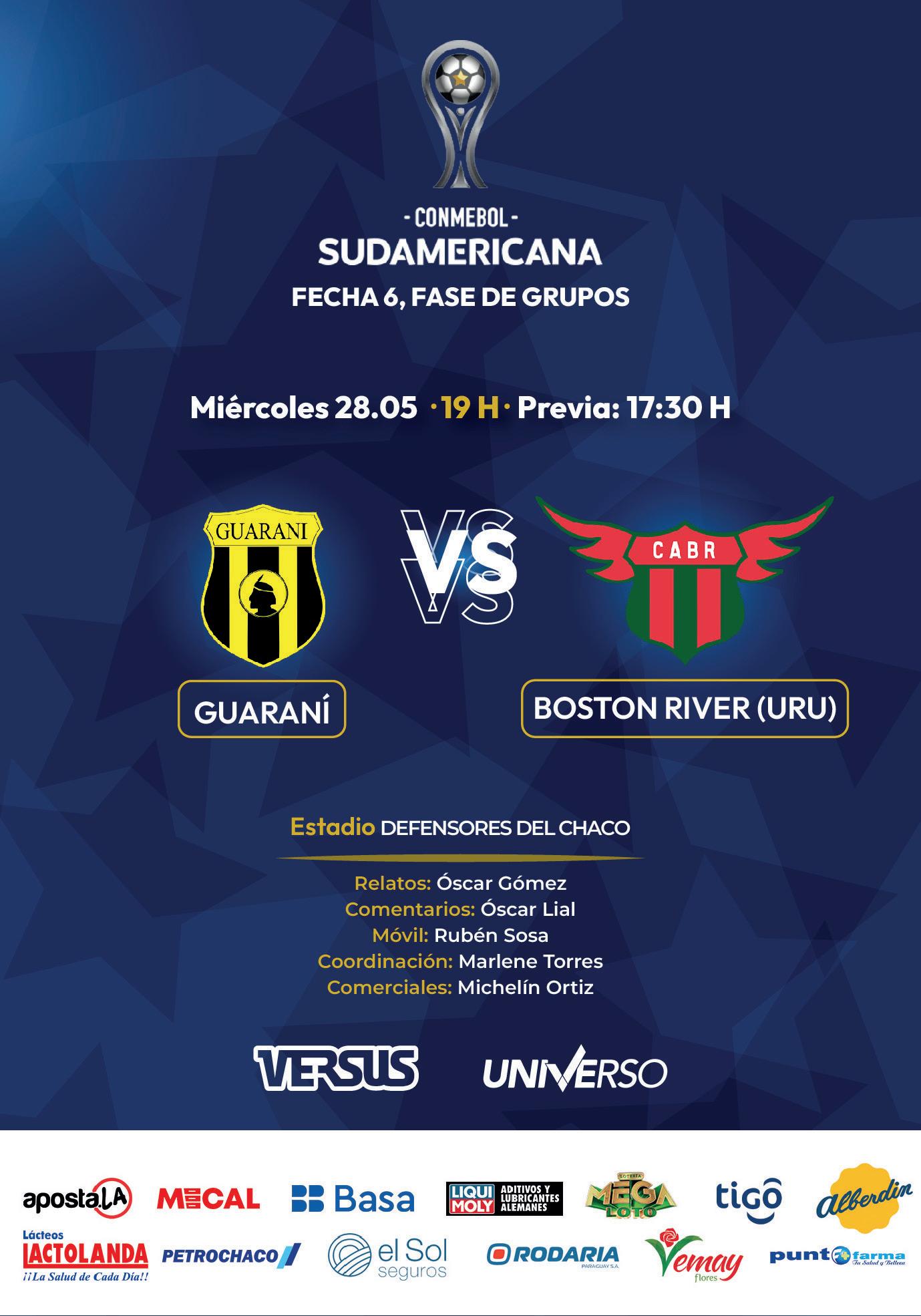 En la fase de grupos de la Copa Sudamericana, este miércoles, se juega la última fecha del grupo A. Guaraní recibe al ya eliminado Boston River de Uruguay; e Independiente de Avellaneda al boliviano Nacional Potosí.