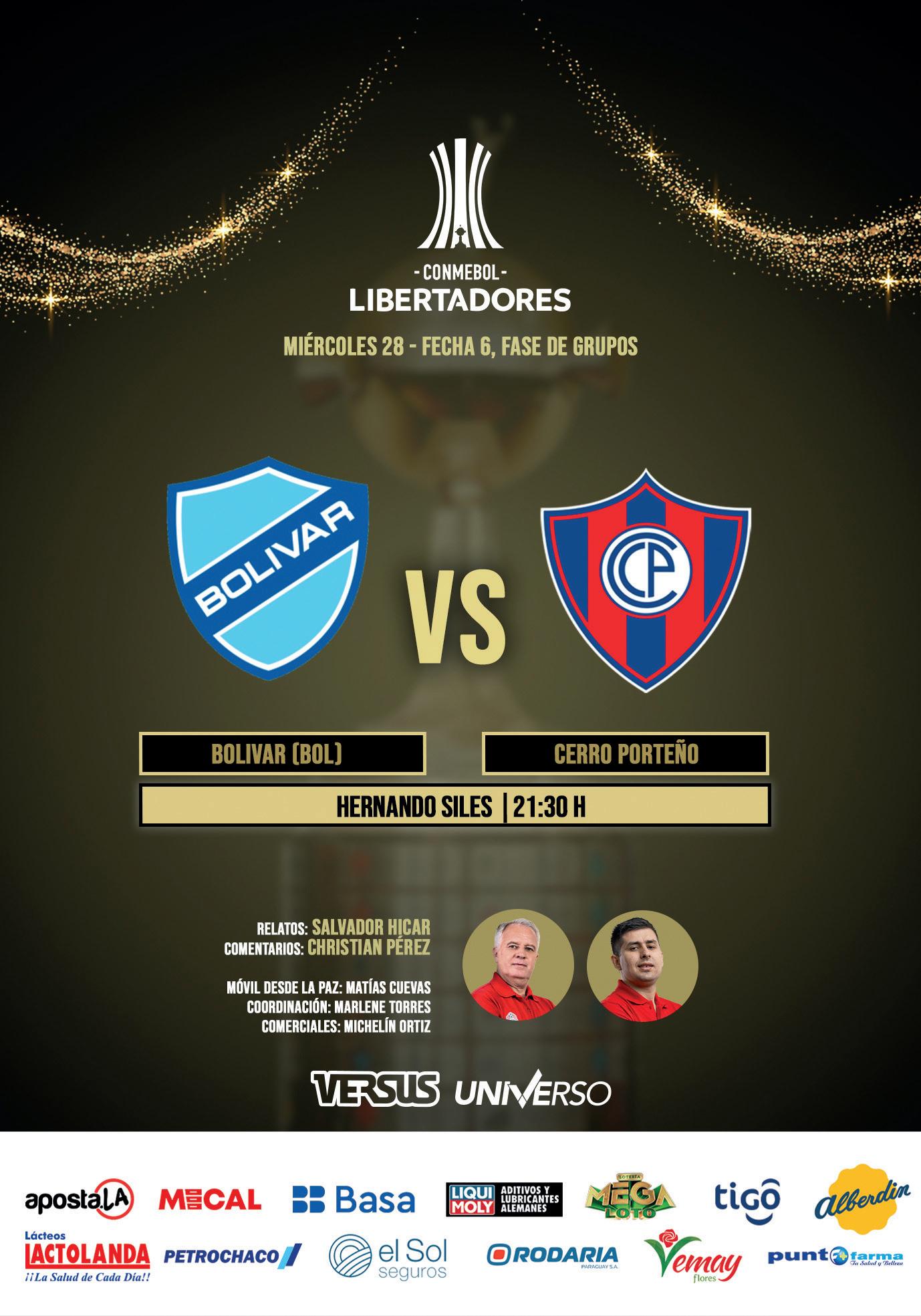 Difícilmente Cerro Porteño quede fuera de los octavos de la Libertadores, ya que el Sporting Cristal va hoy a la misma hora (21:30) contra el brasileño Palmeiras, el líder que ya ha clasificado, al que debe golear y esperar una caída del Ciclón ante Bolívar.