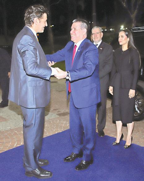 El expresidente Horacio Cartes, considerado en Israel como el “padre de la amistad entre ambos países”, saluda al embajador del Estado de Israel, Amit Mekel