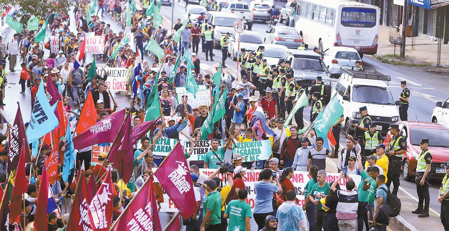 tano hasta llegar a la Plaza de la Democracia, en Asunción, donde se desarrolló el acto central, donde los principales referentes de la manifestación hicieron los planteamientos o necesidades de cada sector. El secretario general de la FNC, Marcial Gómez, hizo hincapié sobre la nece-