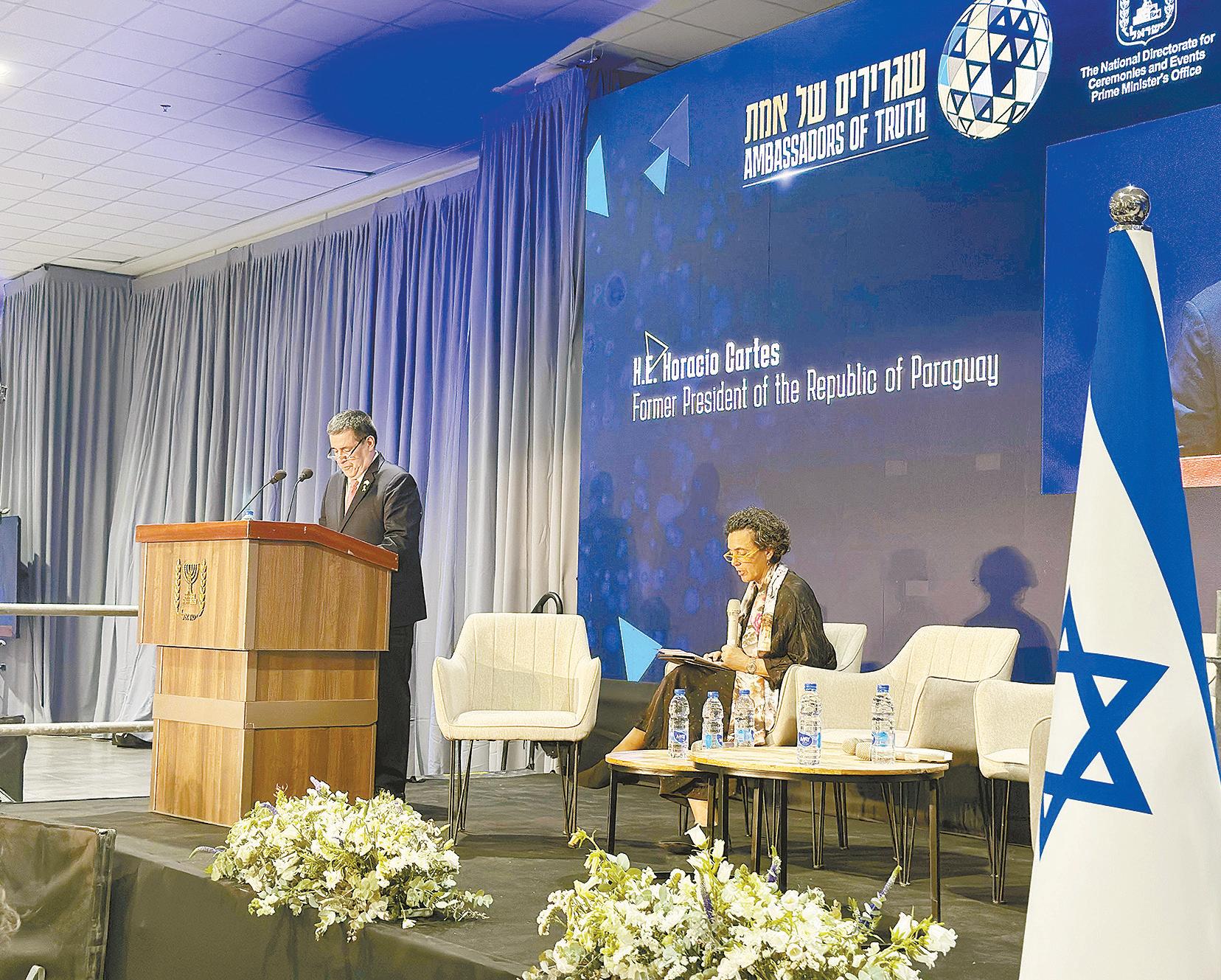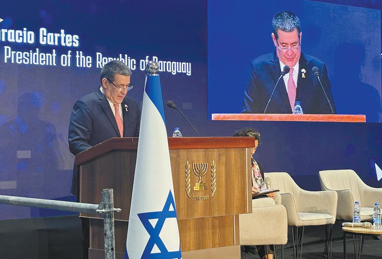 “Estoy aquí no solo como expresidente de Paraguay, sino como un amigo de Israel, de su pueblo y un aliado de su causa, y cuando un amigo habla lo hace desde la lealtad, desde el compromiso y desde la convicción inquebrantable de que la justicia no es nego-