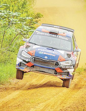 El piloto Miguel Zaldívar junto a su copiloto Víctor Aguilera, a bordo del Skoda Fabia RS Rally2, se lució en el Rally de San Pedro, por la segunda fecha del Campeonato Nacional, que tuvo como epicentro a la ciudad de Santaní.