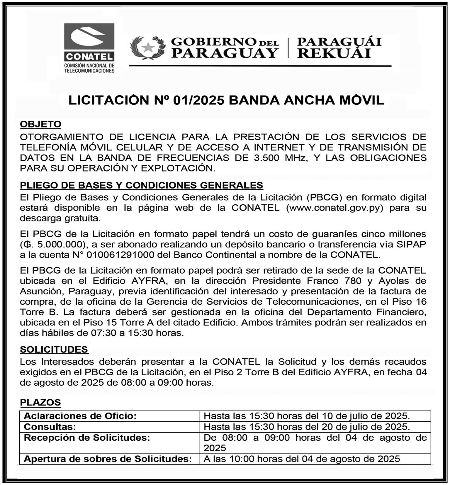 Live: @SenadoresPy; canal 4 (Tigo) y canal 24 (Copaco).