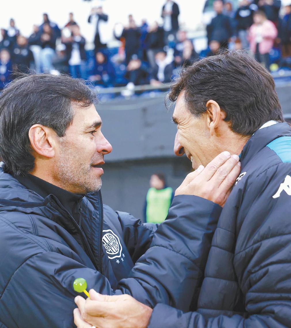 El saludo entre Fabián Bustos y Gustavo Costas antes del amistoso entre Olimpia y Racing. El Franjeado ya palpita el debut en el Clausura