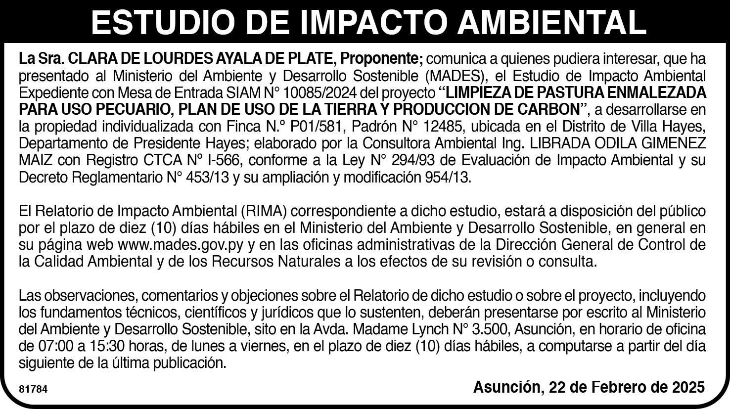 “En la búsqueda específica de estos elementos es que pudiéramos encontrar alguna anotación referente a un sitio más específico. Nosotros tenemos ya delimitada una zona de búsqueda, pero, obviamente, eso es un poco extenso y lo que estamos detrás es de información que nos pueda delimitar y darnos un rango un poco más exacto, más pequeño para la búsqueda”, indicó Zárate, este sábado, a la 1020 AM. Agregó que estos trabajos continuarán y seguirá la búsqueda en la zona. El operativo de búsqueda se inició con la información proveída por Teresita Ramos, que incluso indicó a la familia que Félix Urbieta habría fallecido ya en el 2019 y que sus restos estarían en la zona de esta estancia.