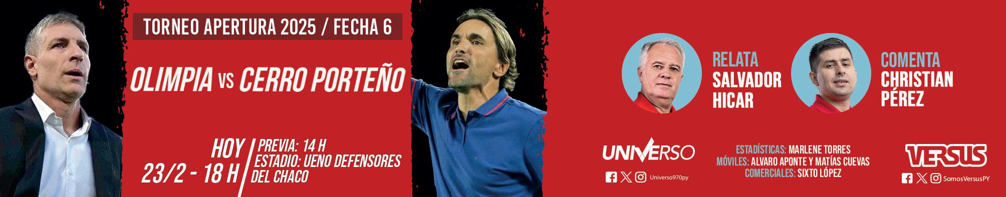 Este domingo se juega el primer superclásico de 2025 entre Olimpia y Cerro Porteño por el torneo Apertura, a partir de las 18:00, en el estadio ueno Defensores del Chaco.