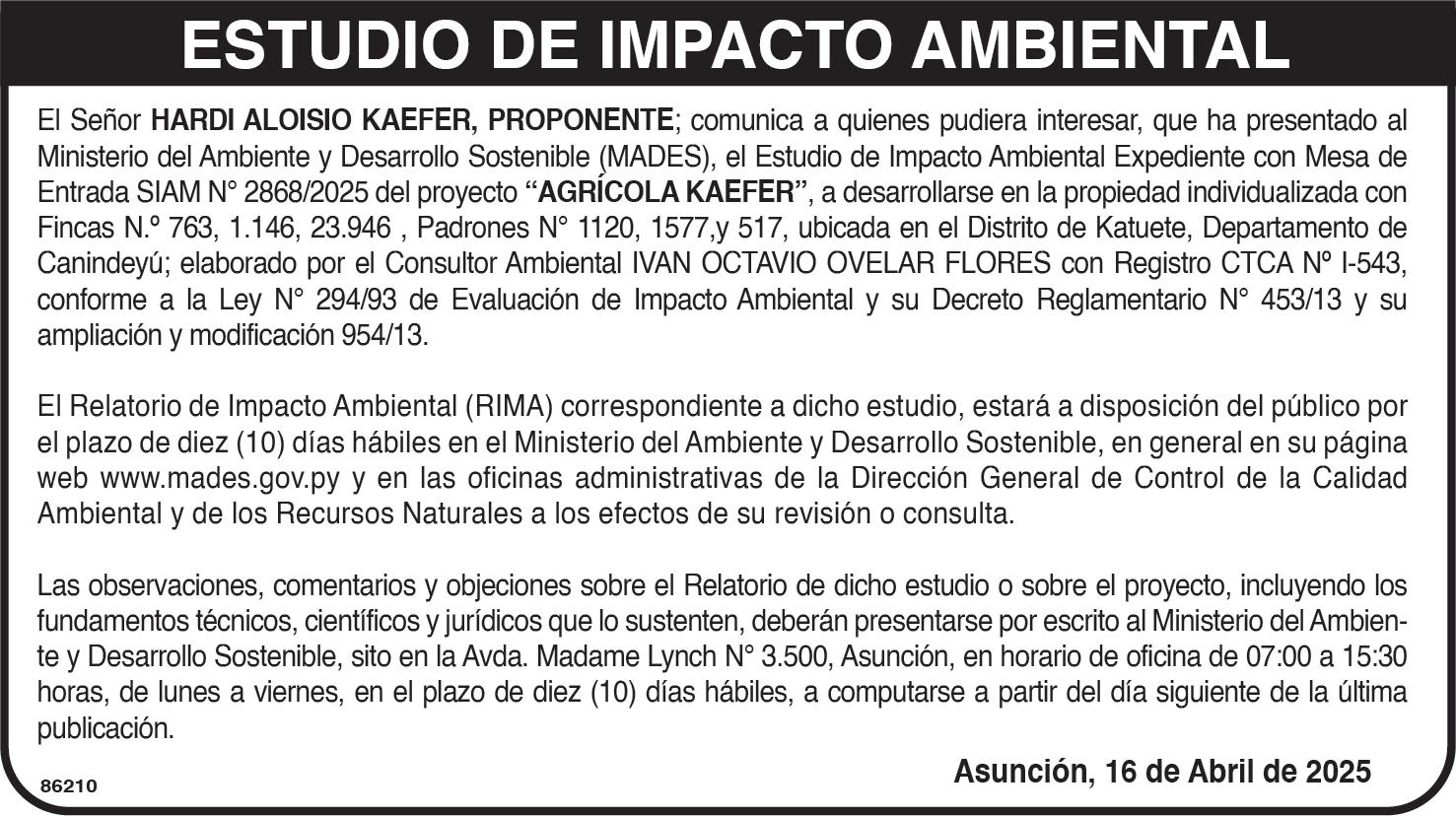 El presidente de la República, Santiago Peña, promulgó la Normativa N.° 7459, que establece un nuevo criterio para el cálculo de la patente de rodados, fijándola en el 0,3 % del valor imponible del vehículo, con una reducción progresiva del 5 % anual hasta los 10 años de antigüedad del automotor.