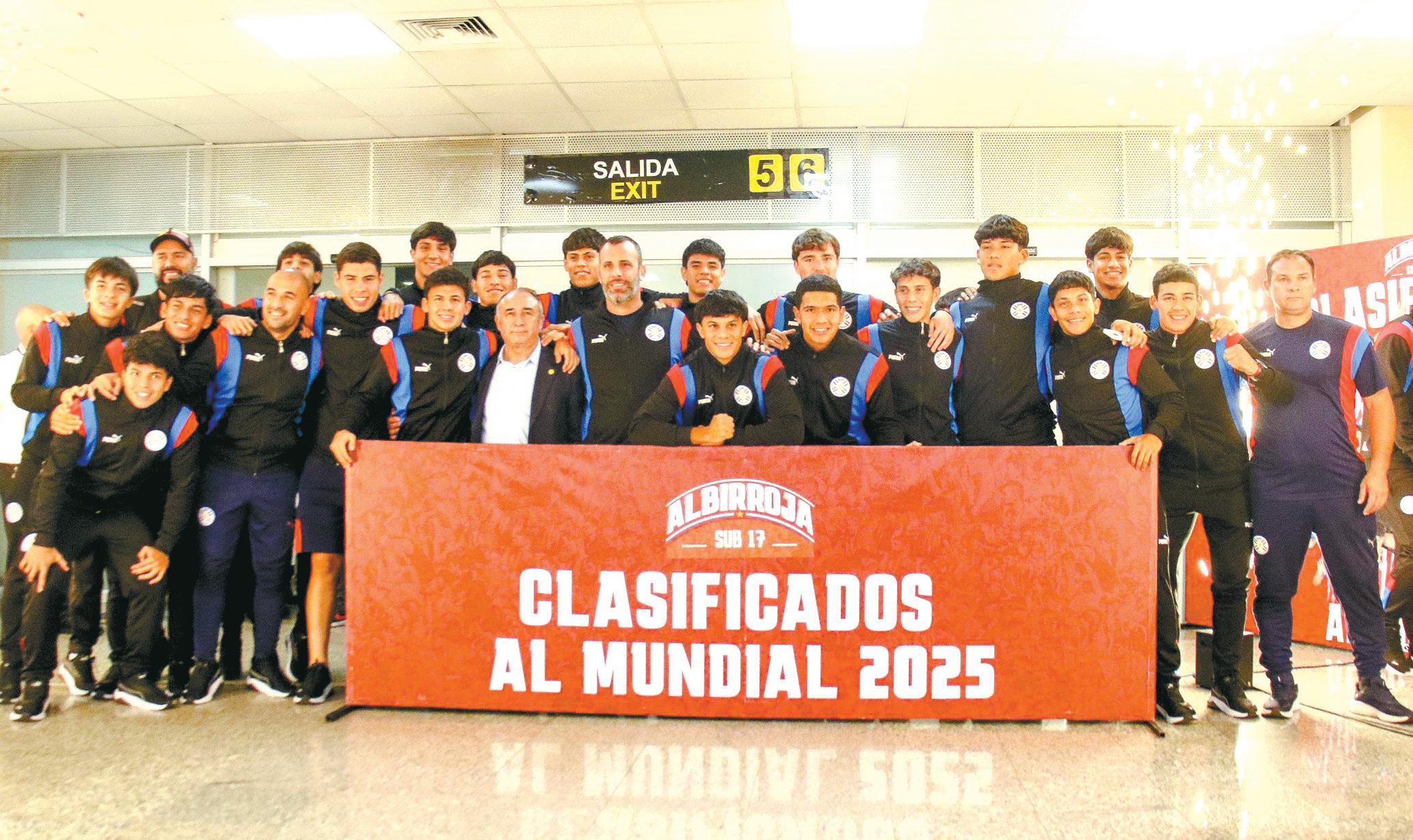 El plantel completo de la Albirroja mundialista Sub-17 que retornó al país