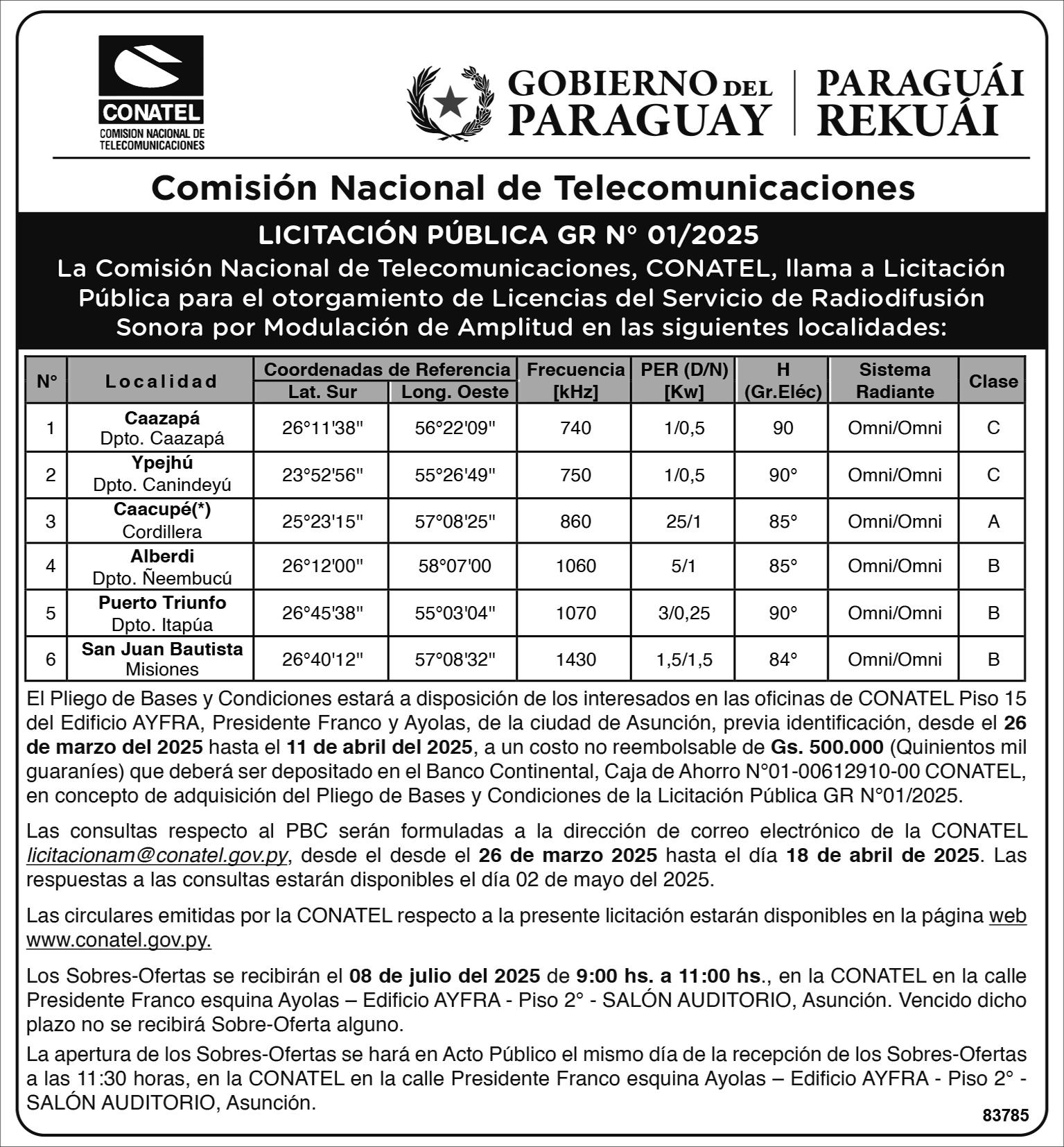 Las localidades beneficiadas con la ampliación del servicio son: Concepción, San Estanislao, Caazapá, Caaguazú, Villarrica y Cambyretá.