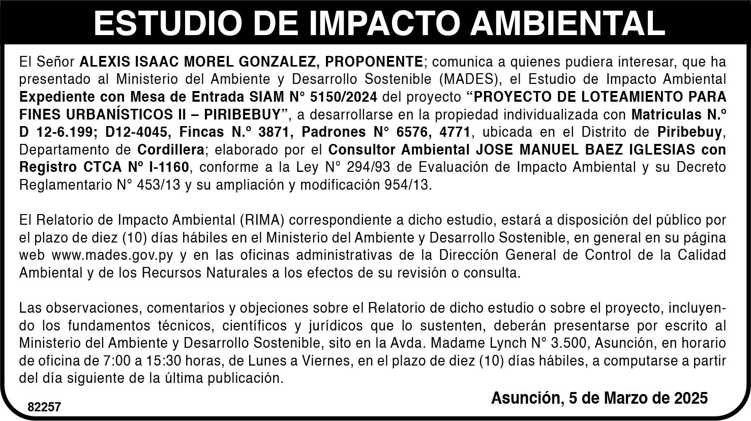 De acuerdo con el llamado licitatorio, que puede encontrarse en el portal de Contrataciones Públicas bajo el ID n.° 447876, la inversión ronda los G. 143.171 millones y está financiada por el Banco Interamericano de Desarrollo (BID). En setiembre de 2024 se realizó la apertura de ofertas públicas y participaron cuatro consorcios interesados, cuyas propuestas continúan todavía en etapa de evaluación.