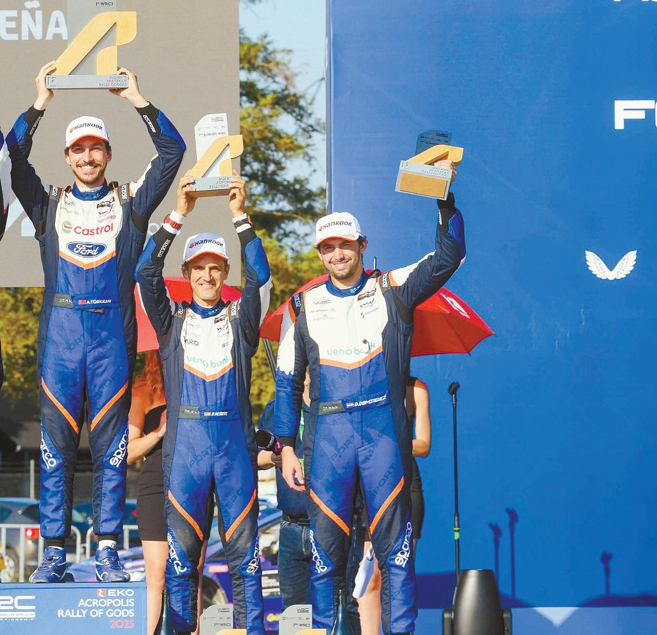 En la 69.ª edición del Acrópolis Rally de Grecia, el piloto paraguayo Diego Domínguez Bejarano ganó dos de las cuatro pruebas especiales del tramo Smokovo de 26.16 kilómetros, para ubicarse en la tercera posición del podio, que encabezó el turco Ali Turkkan, mientras el australiano Taylor Gill concluyó segundo.