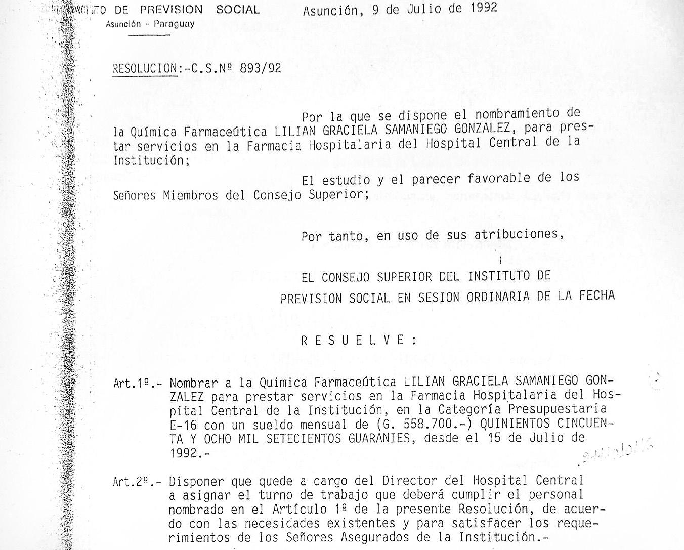 El IPS finalmente mostró el legajo de la senadora Lilian Samaniego, quien fue funciona ria de la previsio nal. Los docu mentos revelan un modesto ini cio cumpliendo funciones en la farmacia de la institución. P. 6