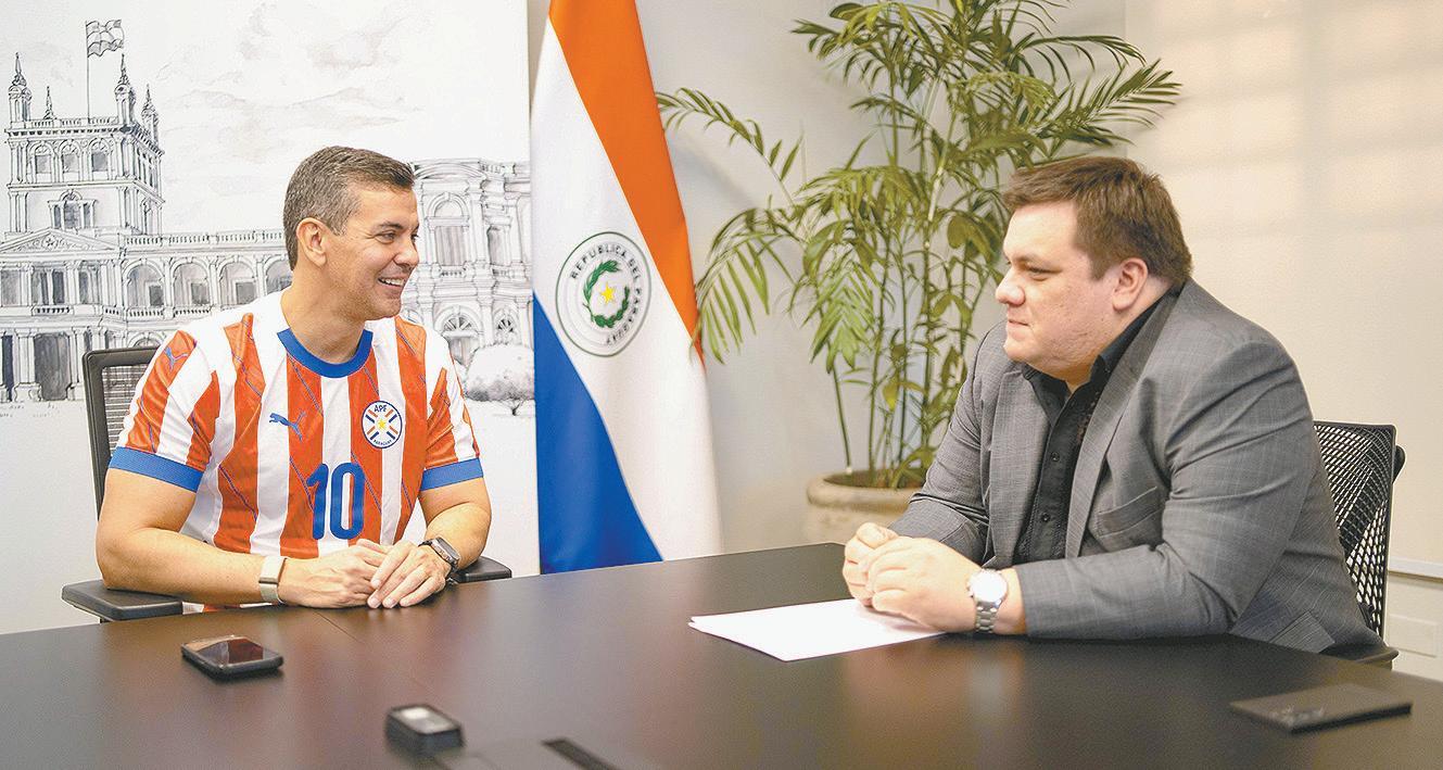 El presidente de la República, Santiago Peña, conversó con el titular del Consejo de Gobernadores, César Sosa, para evaluar el avance del proyecto de construcción de las cocinas, depósitos y comedores para el programa de alimentación escolar Hambre Cero en las