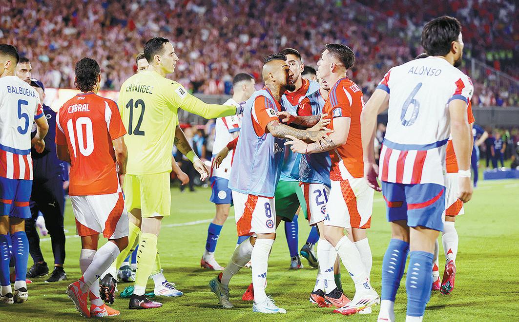 Impotentes jugadores de Chile protagonizaron un incidente con sus pares de Paraguay al final del partido