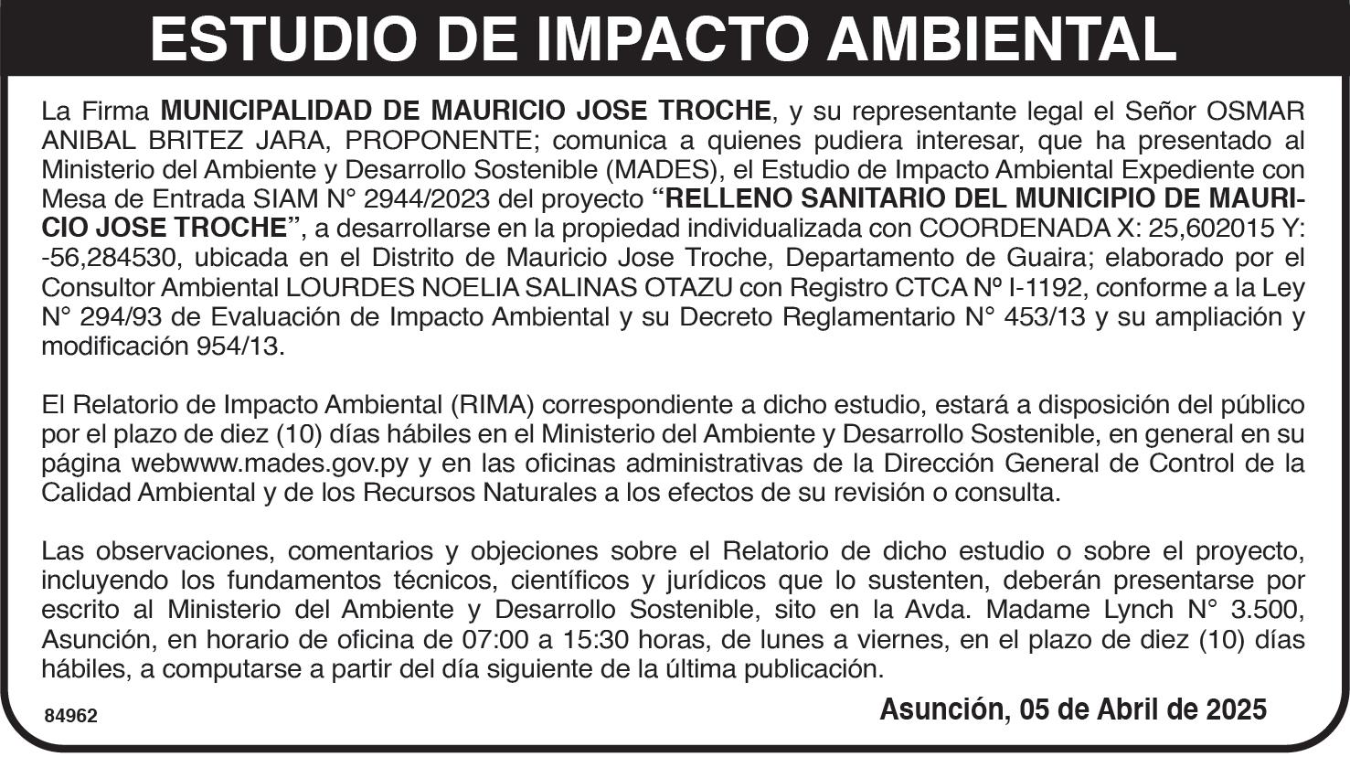 El Poder Ejecutivo emitió el decreto 3659, por el cual dispuso el cierre de la Embajada de la República de Paraguay en Canadá. El documento fue firmado por el presidente de la República, Santiago Peña, el pasado 3 de abril, basado en la nota remitida por el Ministerio de Relaciones Exteriores, que solicitó el cierre de la representación diplomática en ese país.