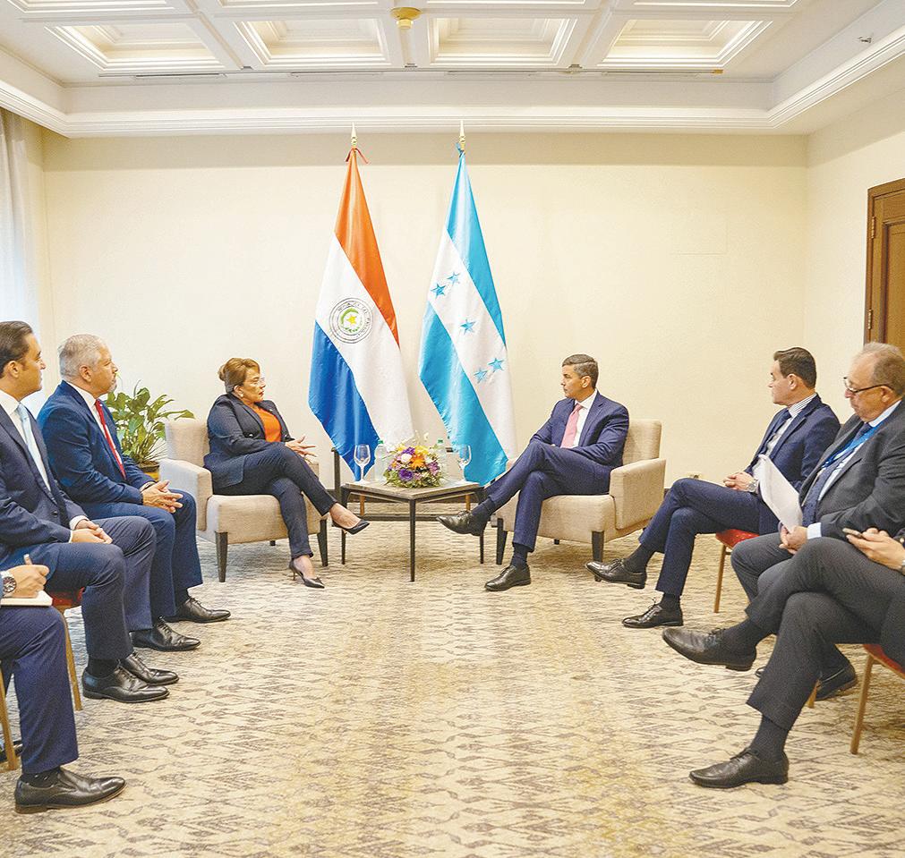 Santiago Peña participó en Uruguay de una reunión con Xiomara Castro, presidenta de Honduras