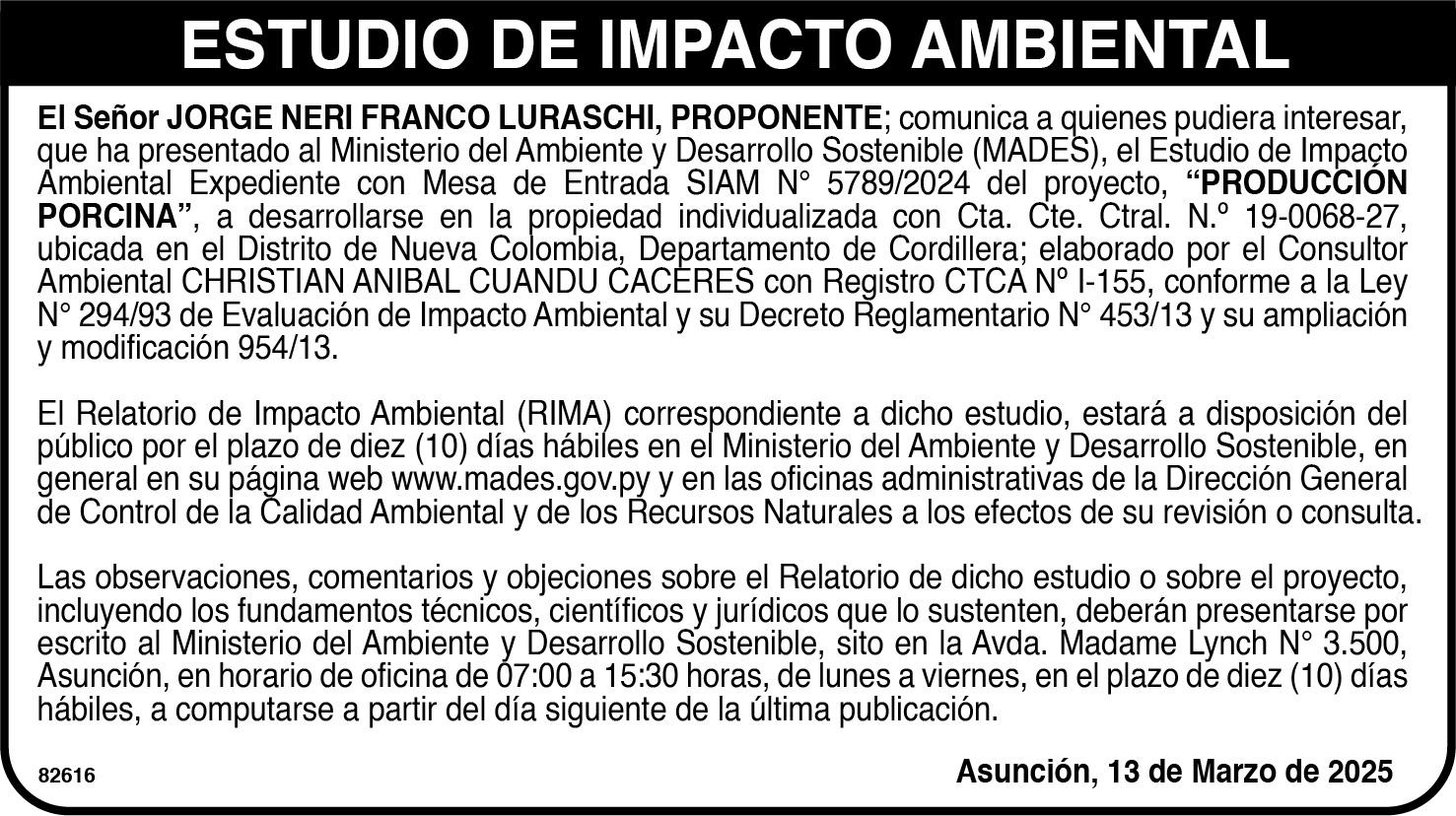 visto presentarse el domingo en Ypané.