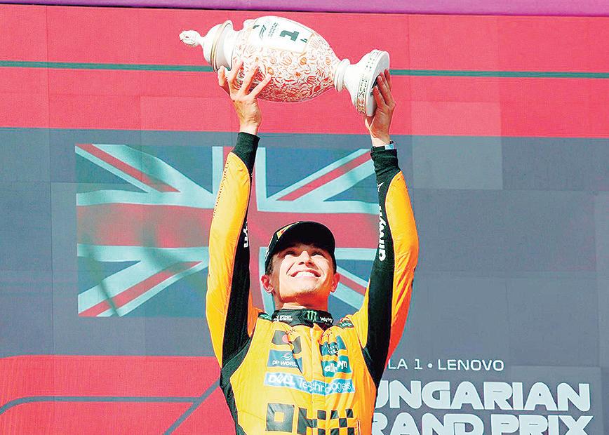 El piloto inglés Lando Norris logró una brillante victoria en el Gran Premio de Hungría de Fórmula 1, este domingo en el circuito de Hungaroring, en el que la escudería McLaren logró un nuevo doblete, con la segunda plaza para el australiano Oscar Piastri. Gracias a su victoria y al cuarto doblete consecutivo de McLaren, Norris suma 275 puntos en la clasificación de pilotos y se coloca a solo nueve de su compañero Piastri. Se trata de la 200.ª victoria de McLaren en la categoría reina del automovilismo. El británico George Russell (Mercedes) ganó el podio, mientras que el monegasco Charles Leclerc, quien partió desde la pole y fue líder durante la primera parte de la carrera, acabó cuarto.