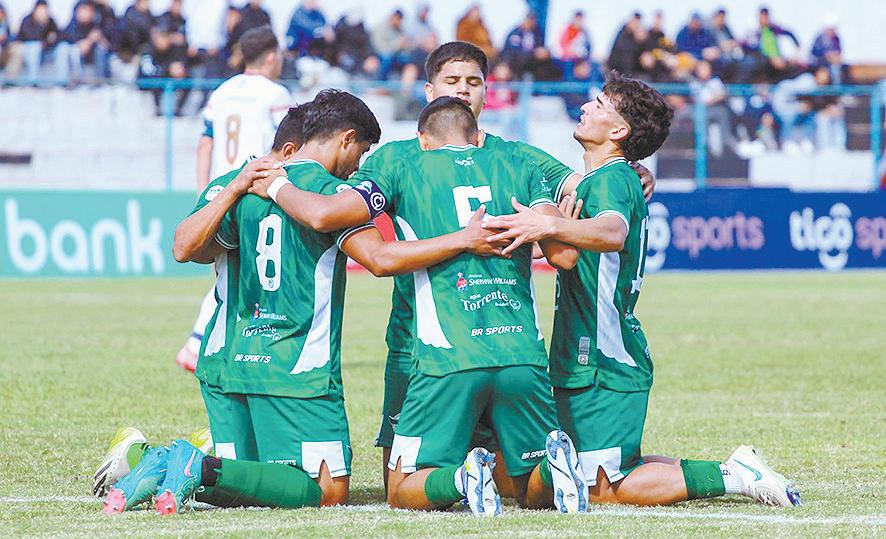 Alejandro “Kaku” Gamarra recibe las felicitaciones de sus compañeros tras anotar un golazo