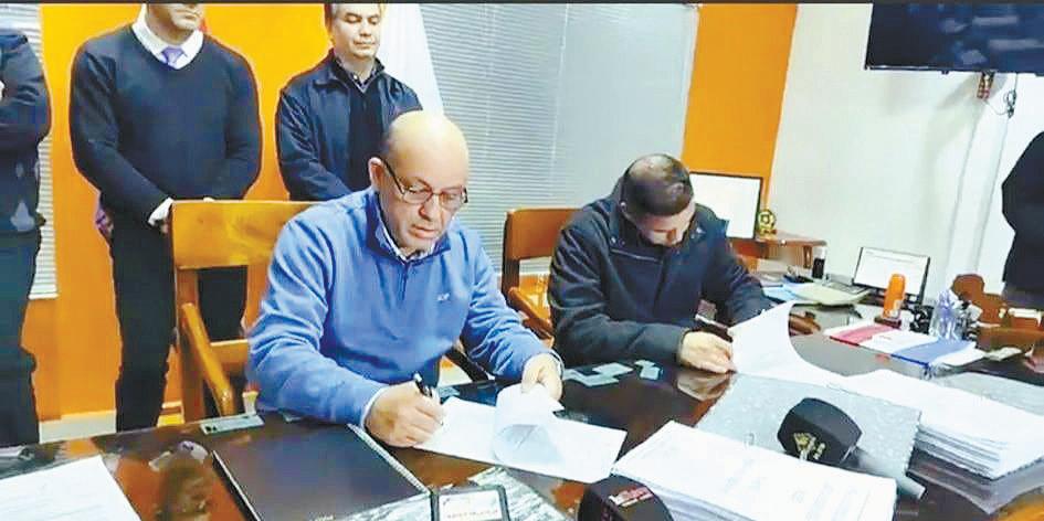 La firma del documento, entre el interventor Ramón