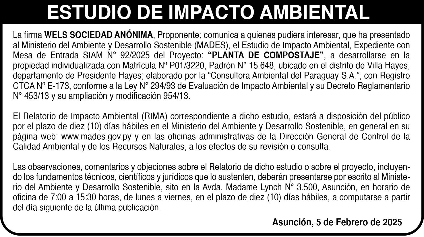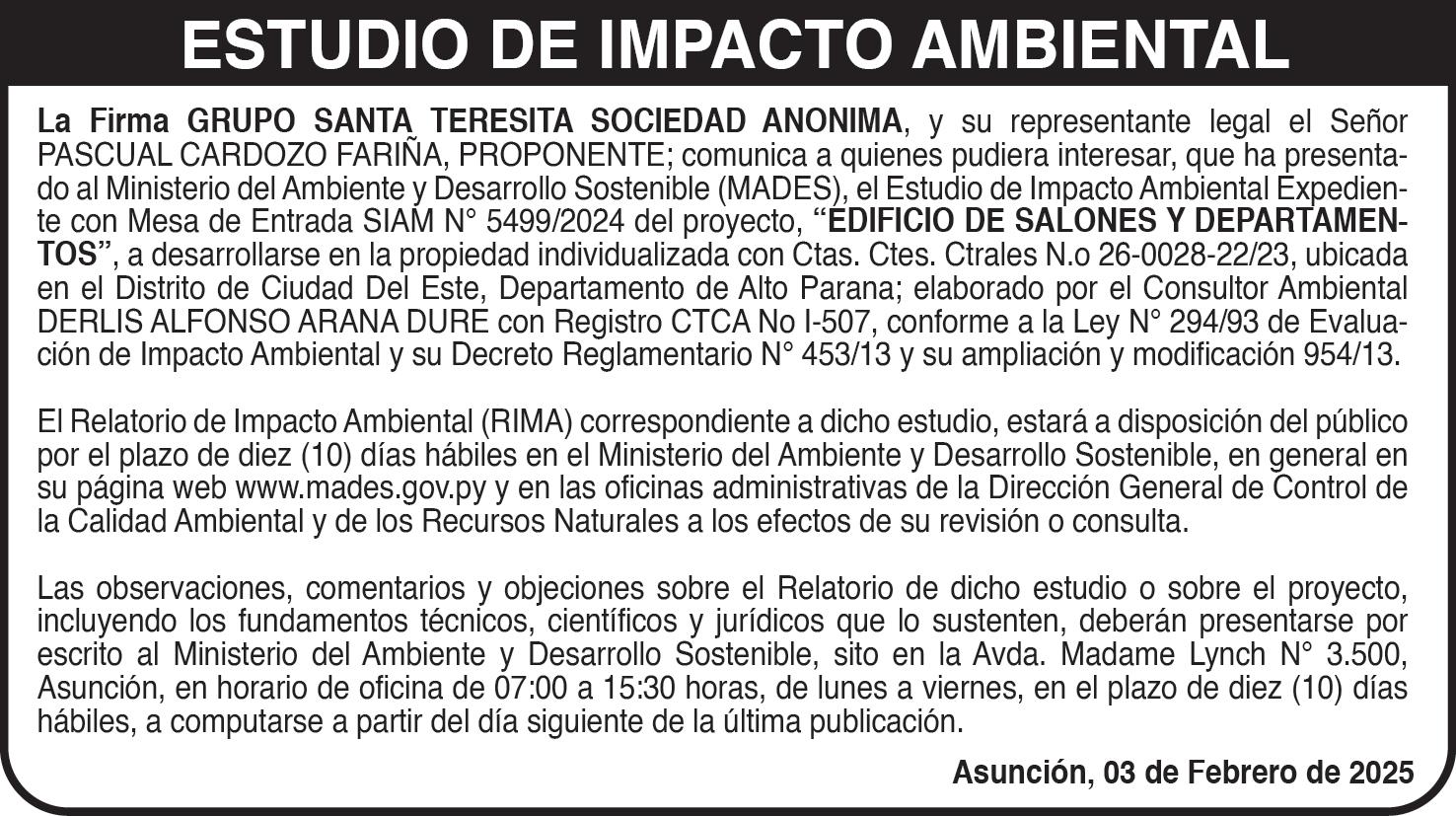 Benítez destacó que el mandatario cuenta con la capacidad patrimonial para adquirir la residencia en San Bernardino y el terreno aún no está formalmente a su nombre, lo cual lo termina beneficiando aún más. P. 2