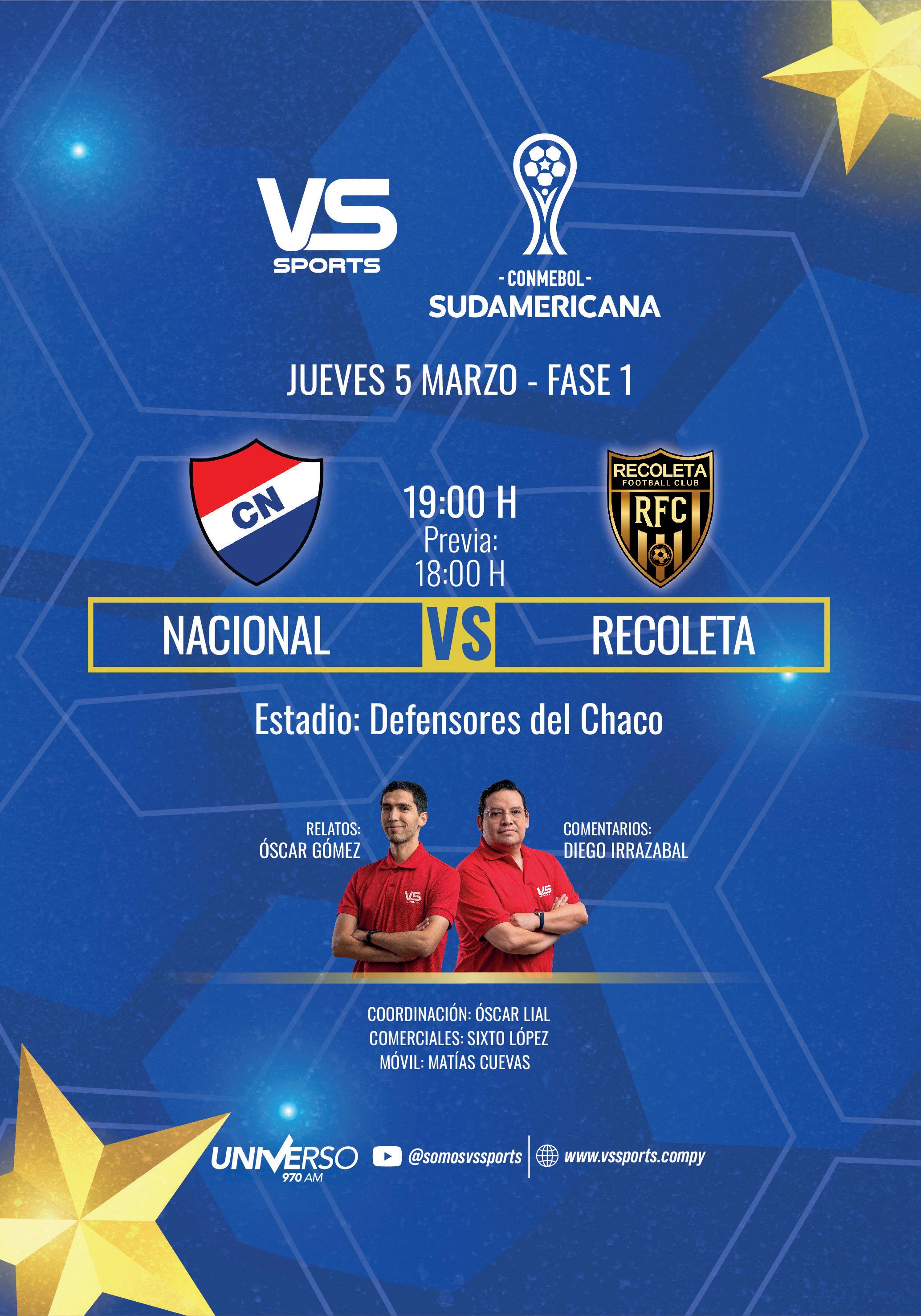 En un partido en el que se puede considerar que no hay un claro favorito, Nacional y Recoleta también dirimirán por el otro cupo a la Fase de Grupos de la Copa Sudamericana. Si bien la Academia carga encima una experiencia importante en torneos internacionales y venía fino en el torneo casero, en los últimos partidos no pudo conseguir victorias y quedó relegado a la segunda posición por detrás del puntero Olimpia.