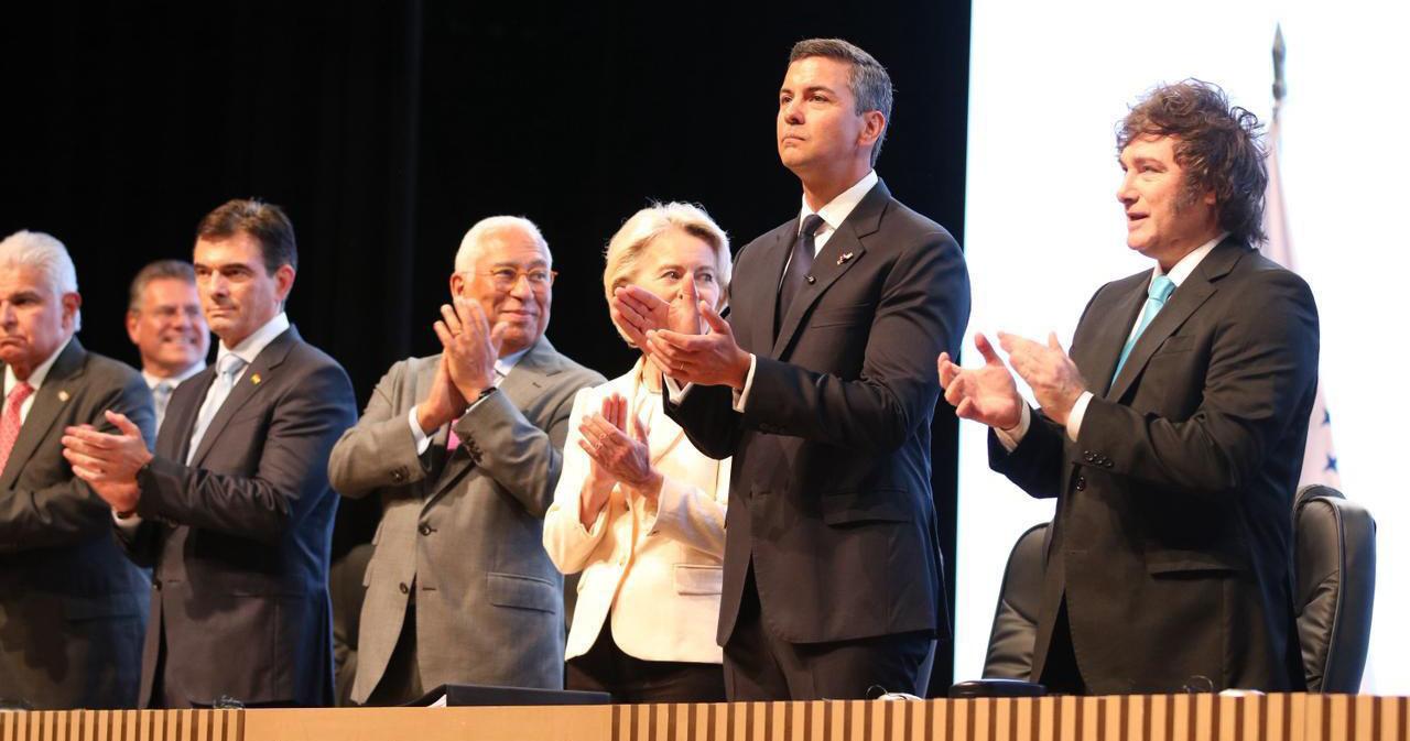Los cuatro países del Mercosur más los 27 del bloque europeo firmaron ayer en Asunción un histórico acuerdo que crea una de las zonas de libre comercio más grandes del mundo y que fue celebrado por los dos bloques como un triunfo del multilateralismo frente al proteccionismo arancelario. Otra vez la capital paraguaya fue escenario, como en 1991, de la firma de un acuerdo que hace 35 años significó la unión aduanera entre Argentina, Brasil, Paraguay y Uruguay. Esta vez, Asunción fue nuevamente sede de la rúbrica que da paso a un coloso comercial.