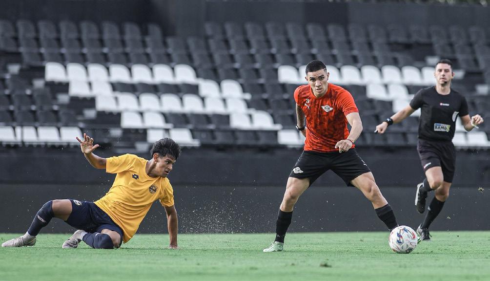 En acción con pelota dominada el liberteño Hugo Fernández (derecha), durante el amistoso ante Trinidense