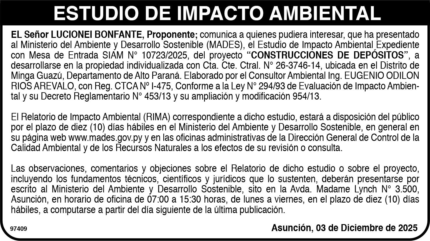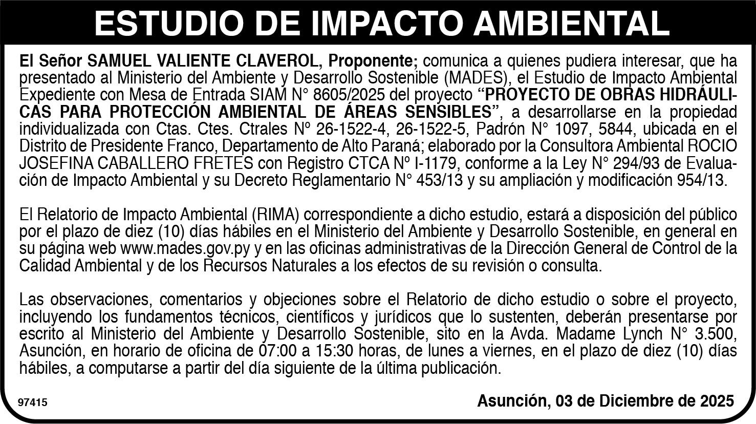 tante, que ya dijo que llegaron algunas cosas, pero no me dio detalles. Estoy enfocado en General Caballero. Lo que venga después será