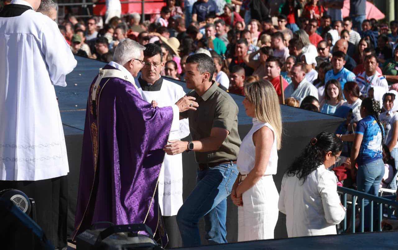 El presidente Santiago Peña participó ayer de la homilía en Caacupé, a cargo del cardenal Adalberto Martínez. Tras la ceremonia, señaló que el gobierno recibe las críticas de la Iglesia y prometió redoblar esfuerzos.