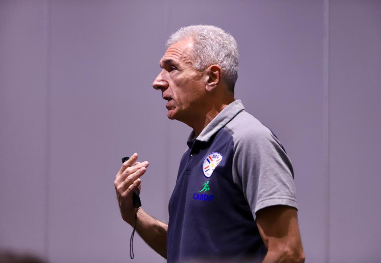 El técnico de la albirroja femenina sub-17, Luiz Guimarães, dando indicaciones antes de la práctica de ayer