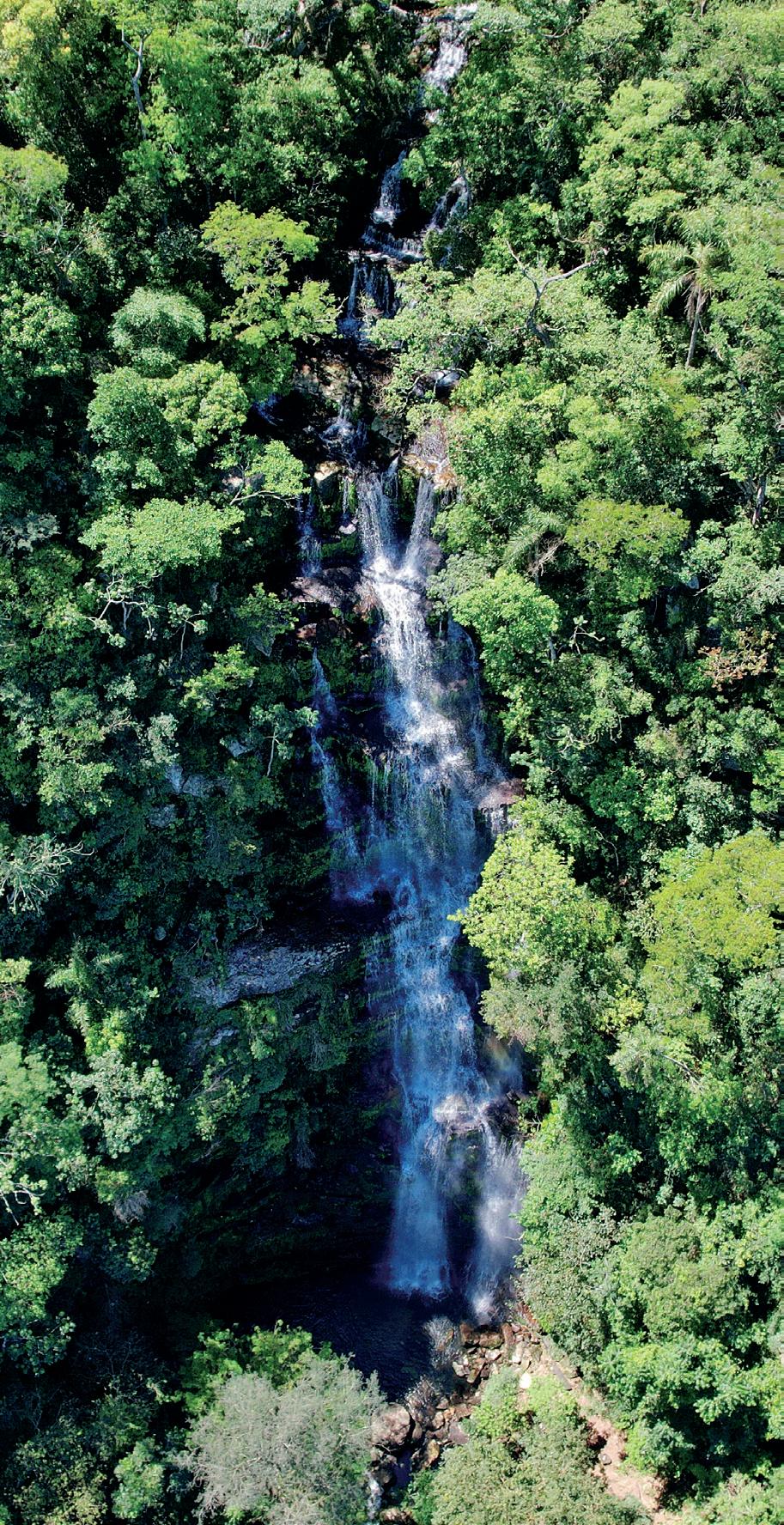En Mbuyapey, departamento de Paraguarí, las aguas que bajan del cerro Cajón desembocan en una espectacular caída de unos 60 metros. P. 20-21