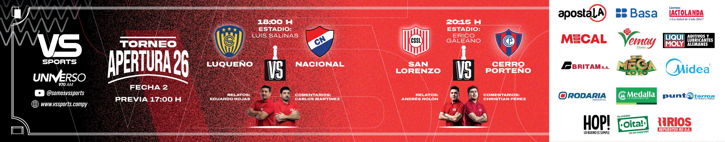 A primea hora, abriendo la segunda fecha del torneo Apertura, en el estadio Luis Salinas, del 12 de Octubre de Itauguá, Sportivo Luqueño será local frente a Nacio -
