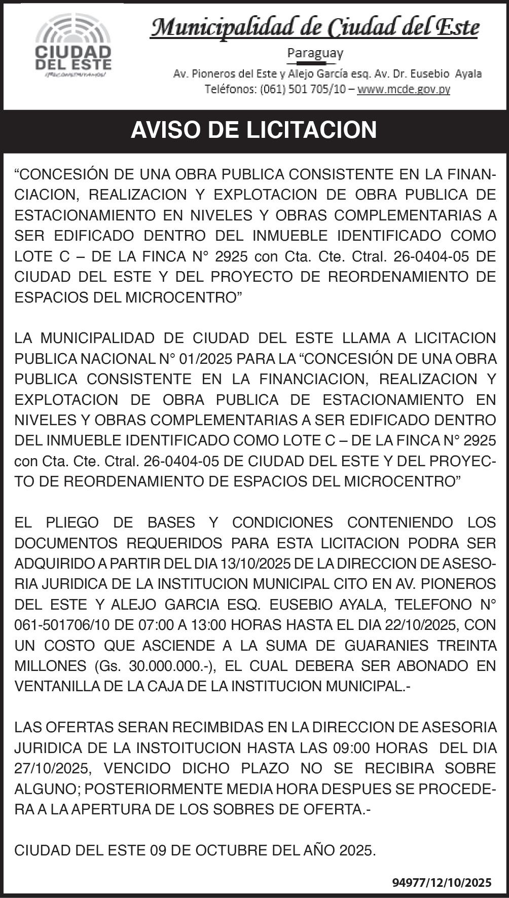 La audiencia preliminar había sido convocado por el magistrado entre los días 7, 8 y 9 de octubre, en un caso en que el Ministerio Público había señalado un presunto perjuicio patrimonial de más de G. 2.500 millones a la comuna esteña.