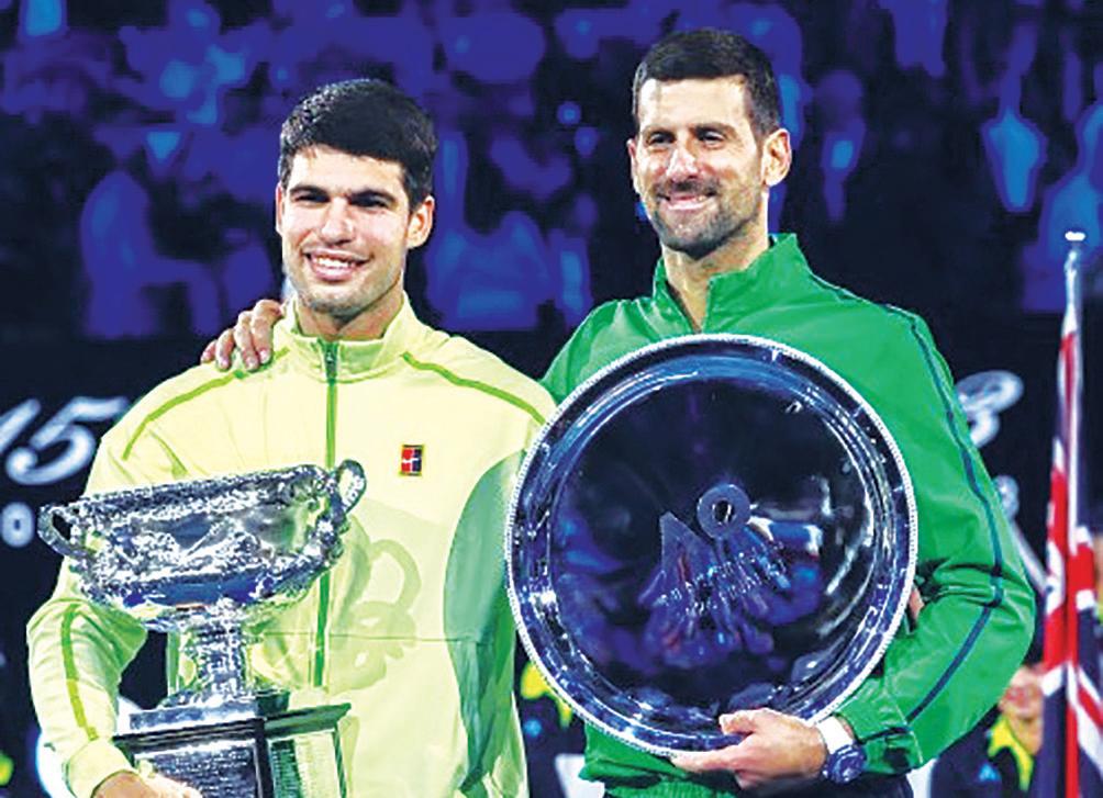 Carlos Alcaraz aparece en la foto con Novak Djokovic, tras ganar el Open de Australia