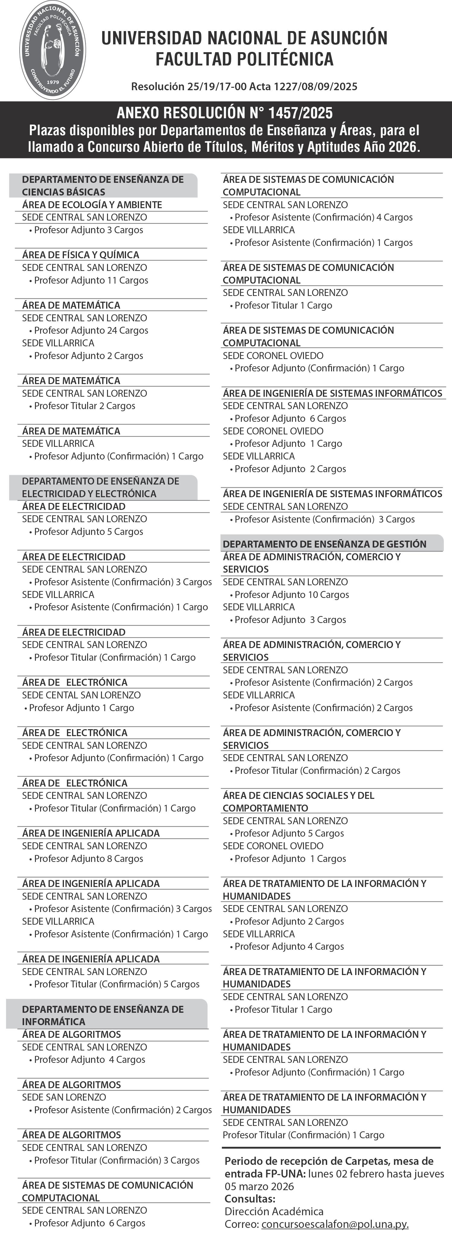llana y el Reglamento General de Becas vigente, bajo estrictas medidas de control para garantizar la transparencia del proceso. La elaboración, aplicación y corrección del examen estuvo a cargo de la Facultad de Ingeniería de la Universidad Nacional de Asunción (FIUNA), conforme al programa oficial de la Educación Media del Ministerio de Educación y Ciencias.