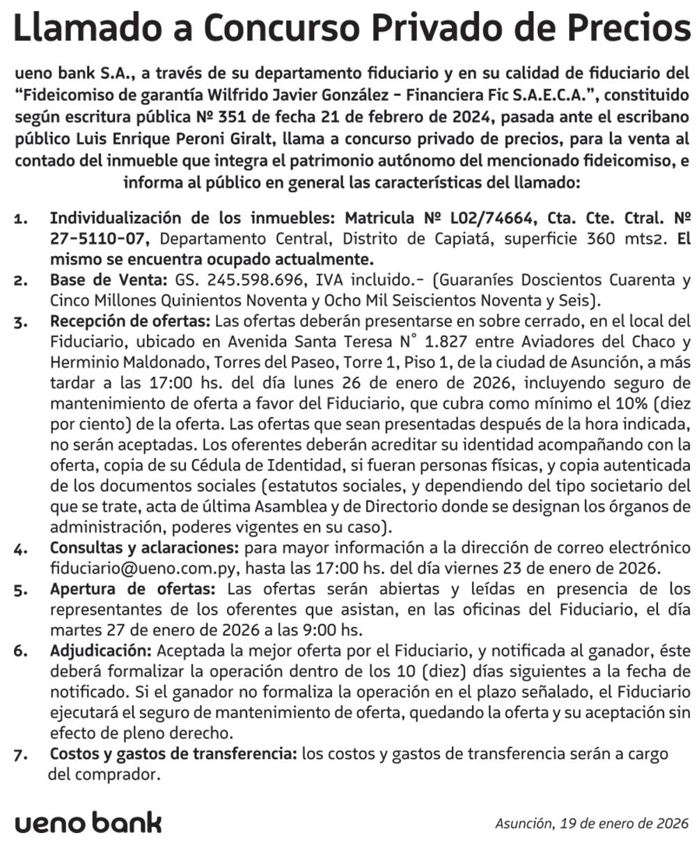 exsecretario de Estado. El juzgamiento estará a cargo del Tribunal de Sentencia Especializado en Delitos Económicos, presidido por la jueza Adriana Planás Bajac e integrado por Ubaldo Matías Garcete y Yolanda Morel de Ramírez. Ante estos mismos jueces, el fiscal Jorge Arce había solicitado en marzo de 2025 que se incorpore como prueba la desgrabación de los