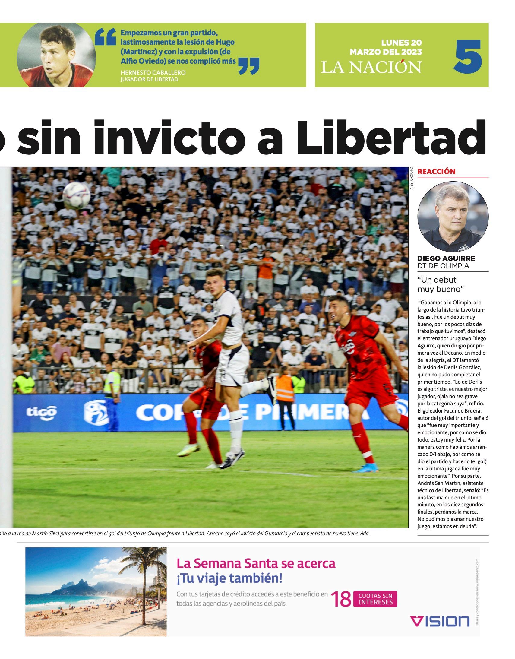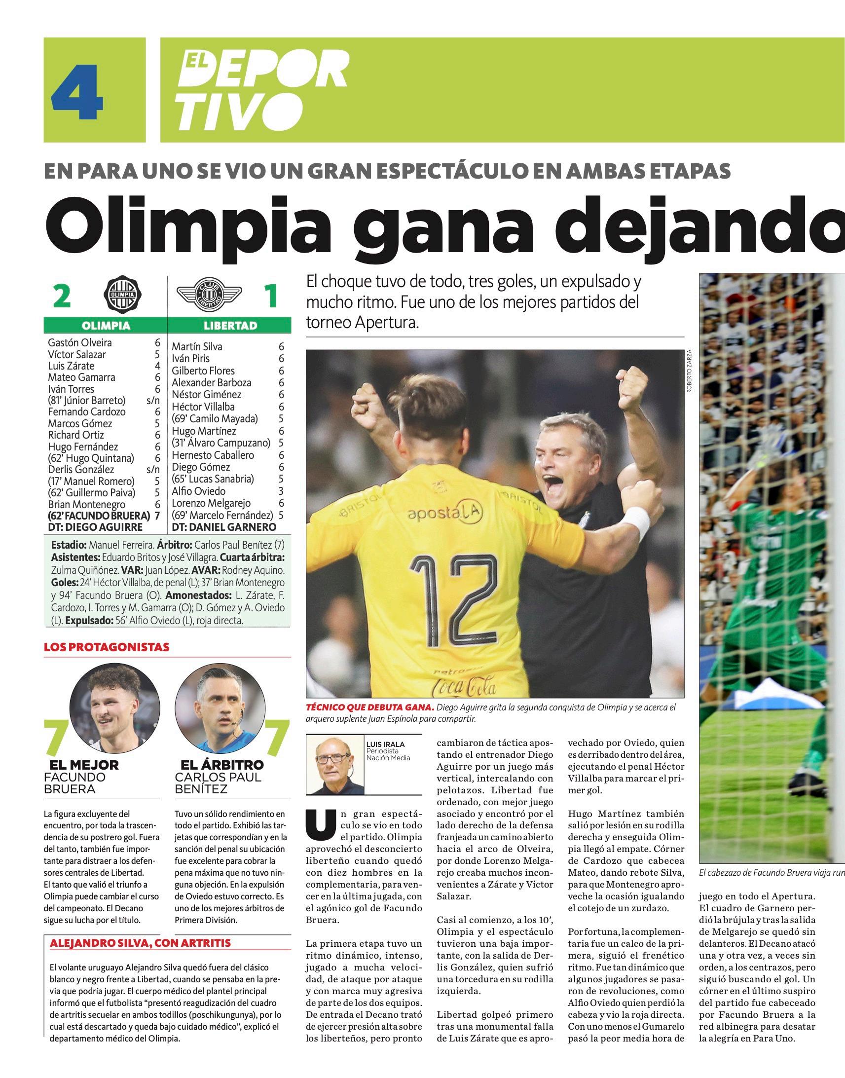 líder (Libertad), que cedió en el clásico blanco y negro frente a Olimpia.