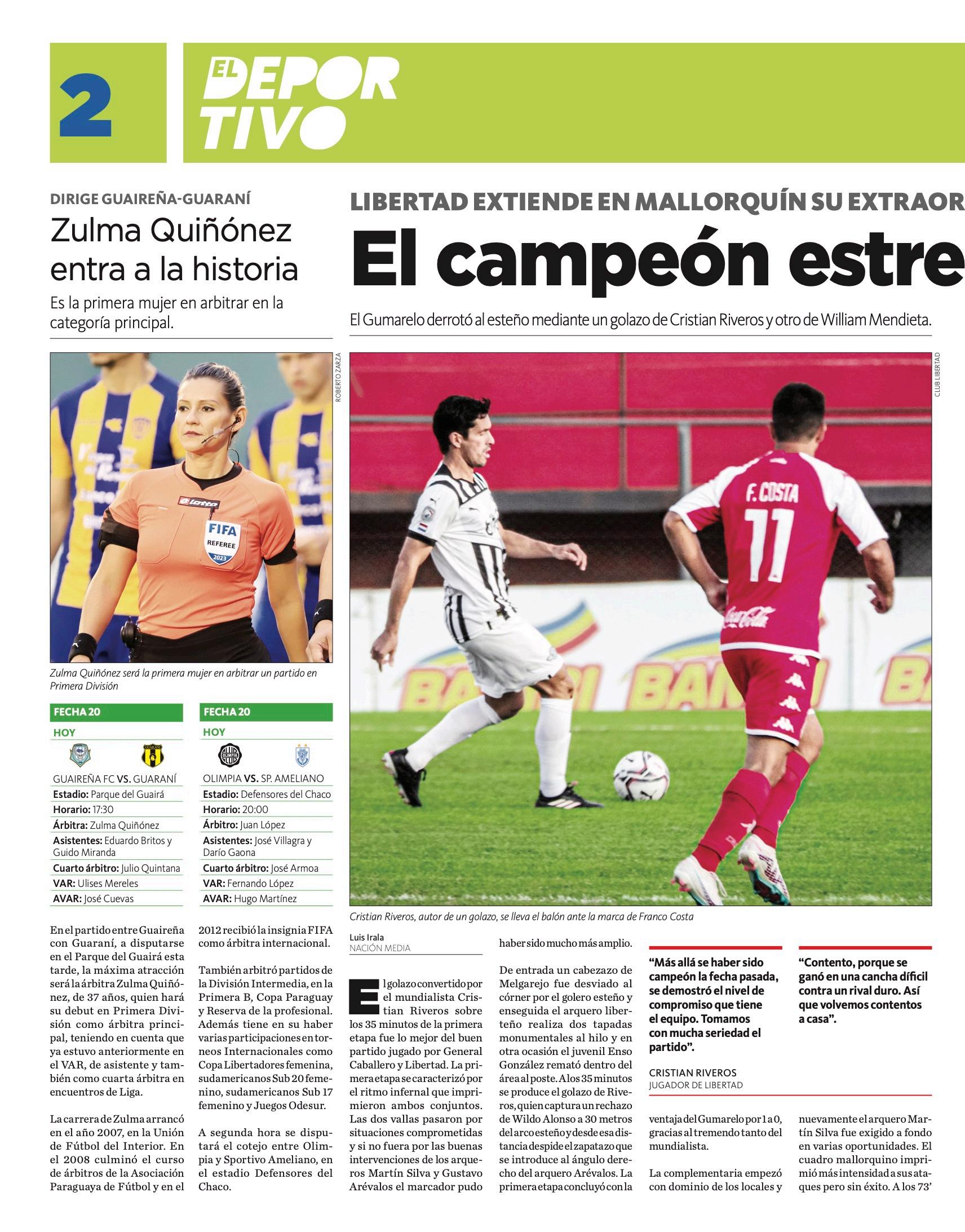 Árbitro: Juan Benítez (7) Asistentes: Héctor Medina y Nancy Fernández. Cuarto árbitro: Derlis Benítez.