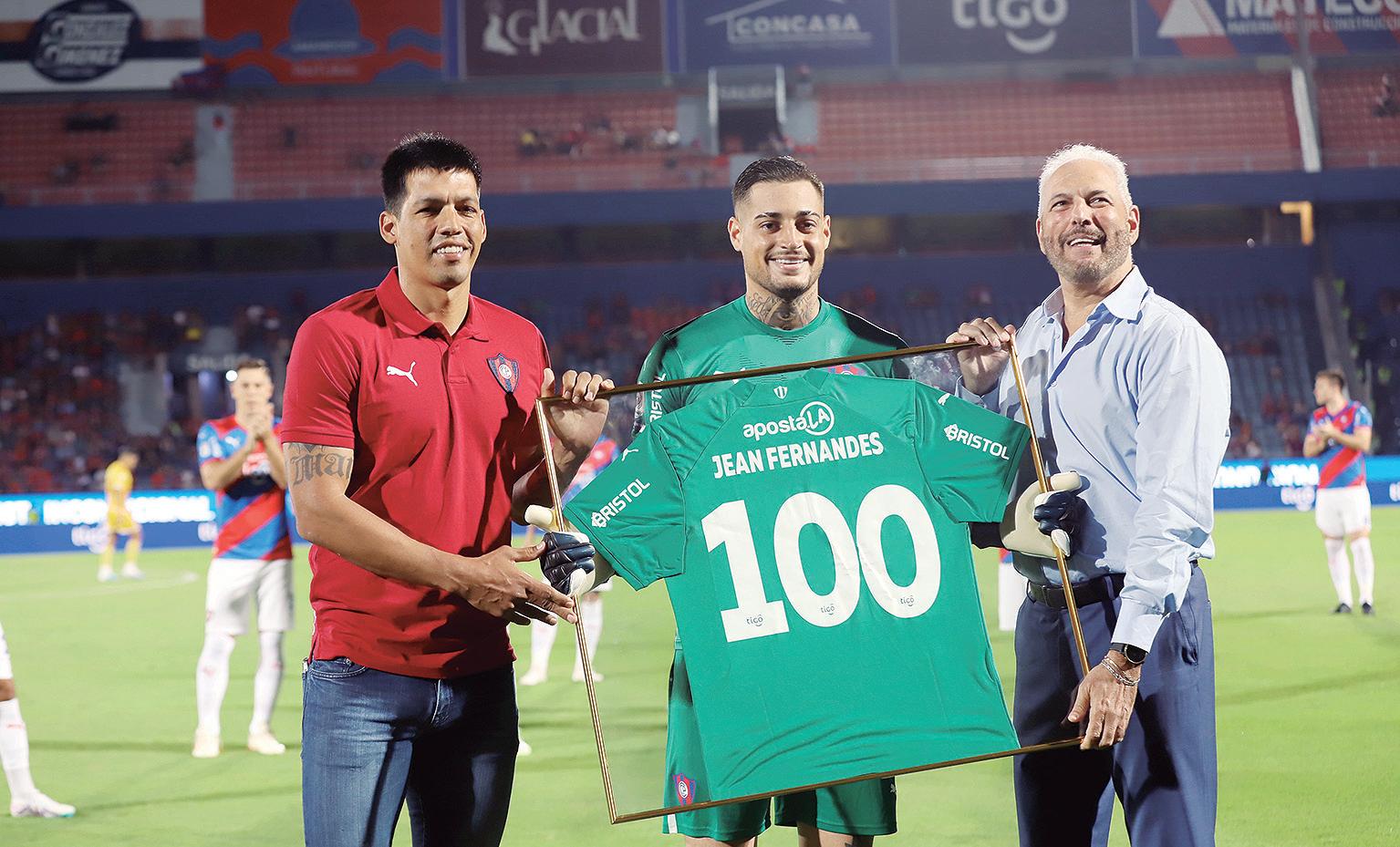 En la previa al partido que Cerro Porteño le ganó a General Caballero, el arquero brasileño Jean Fernandes fue reconocido tras alcanzar 100 partidos con la casaca azulgrana. Participaron del sencillo homenaje Julio dos Santos (secretario técnico) y el presidente Juan José Zapag (derecha). Posteriormente, el golero jugó su partido 101.