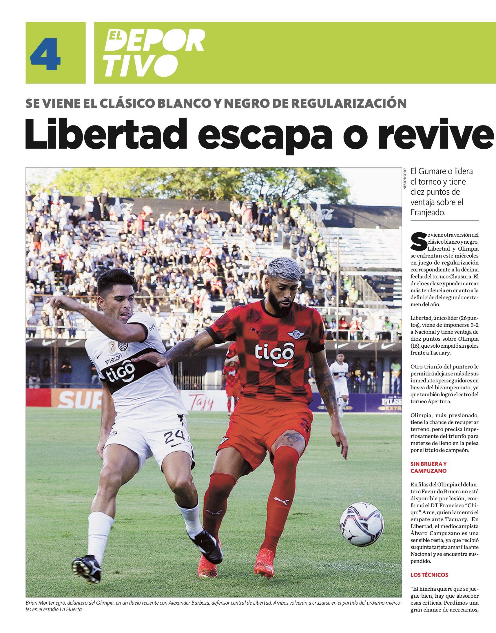 4-5 ] LIBERTAD Y OLIMPIA REGULARIZAN EL MIÉRCOLES