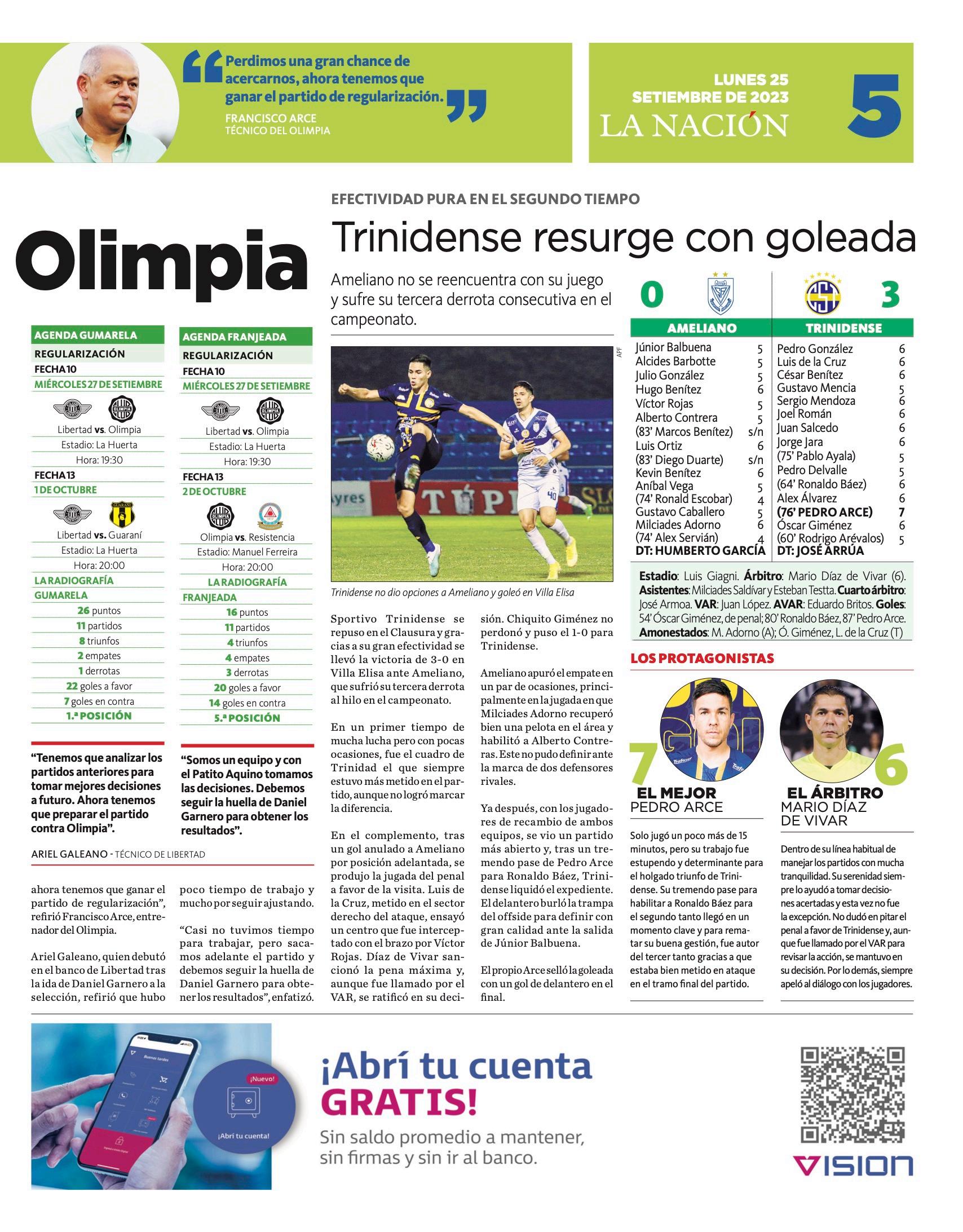 1 mes y 16 días atrás se produjo el último éxito de Nacional sobre Libertad, en el Arsenio Erico. Fue10, el 07/08/2021, con gol de Édgar Zaracho.