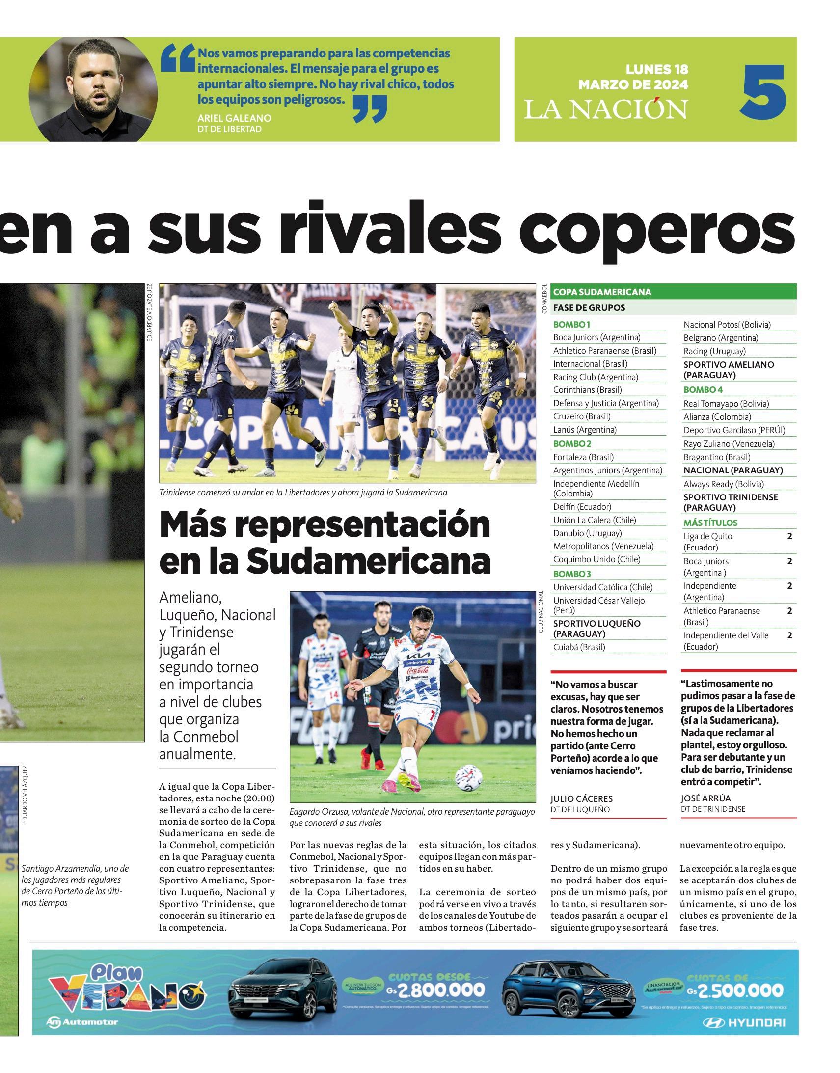 Libertad, que fue el mejor equipo paraguayo de la temporada pasada a nivel local, y Cerro Porteño, que se ubicó en segunda posición, son los únicos representantes del país, considerando que en la fase preliminar quedaron al margen Nacional y el Sportivo Trinidense.