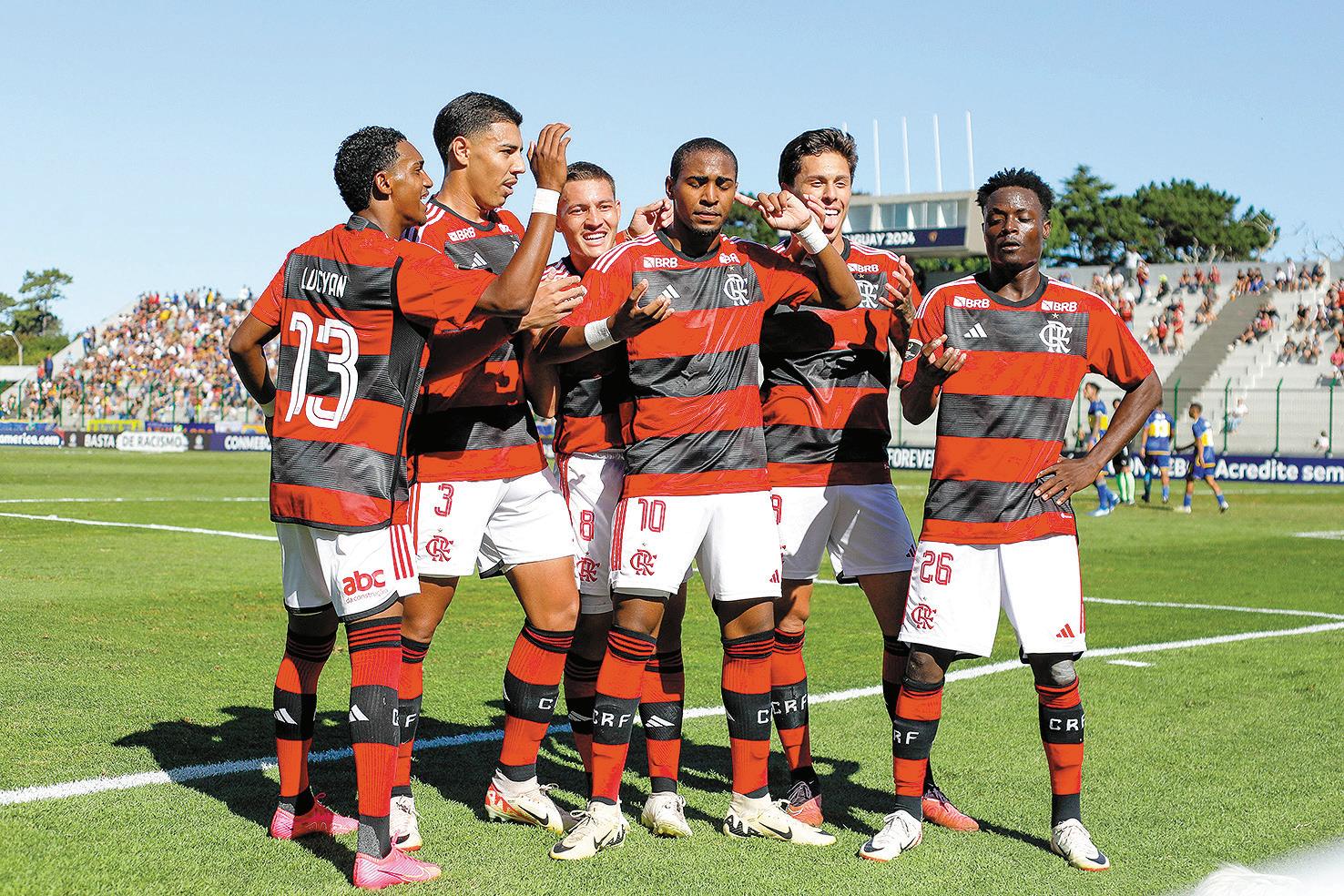 Jugadores de Flamengo festejan uno de los goles