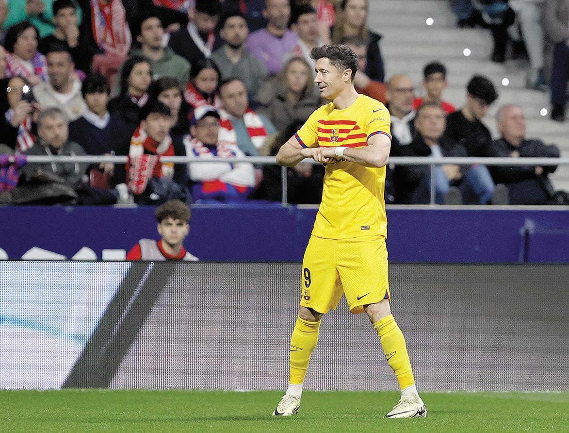 El Barcelona dio un golpe de autoridad con un triunfo 3-0 en el campo del Atlético de Madrid, ayer domingo en el duelo estelar de la 29.ª jornada de la Liga española, donde el equipo azulgrana se pone segundo y sigue a distancia el ritmo del Real Madrid. El protagonista del partido fue el polaco Robert Lewandowski, autor del segundo gol en el 47 ’, después de haber dado la asistencia al portugués João Félix (38’) para el primero y antes de dársela a Fermín López (65’) para el tercero. Con 64 puntos, el Barça adelanta en la clasificación al equipo revelación, el Girona (ahora 3.º, 62 puntos), que había perdido el sábado 1-0 en el campo del Getafe (10.º) y sigue desinflándose.
