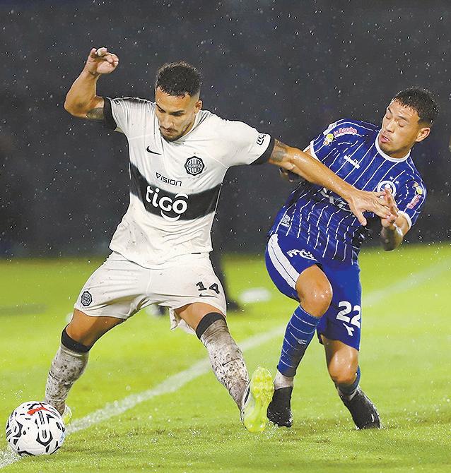 El solense Fernando Díaz se interpone en la marca al jugador de Olimpia Fernando Cardozo